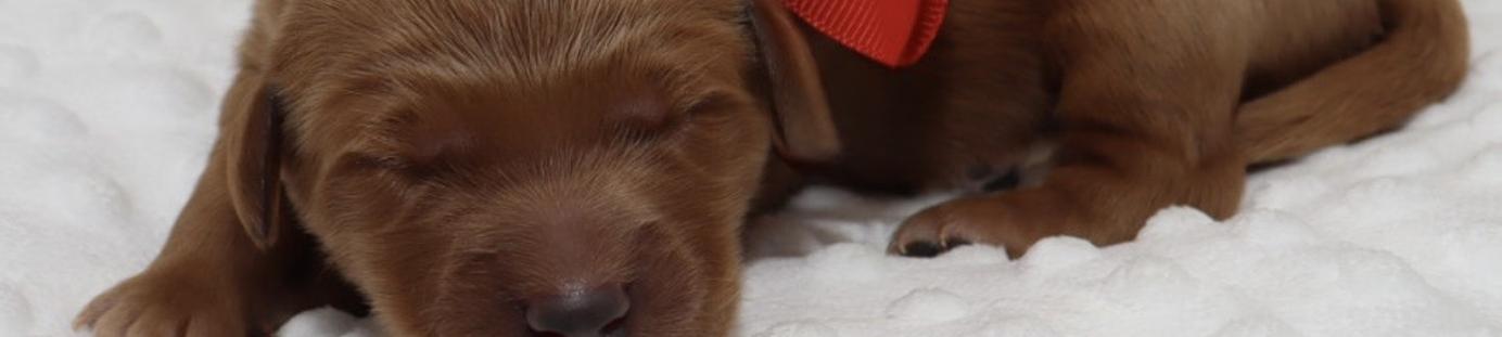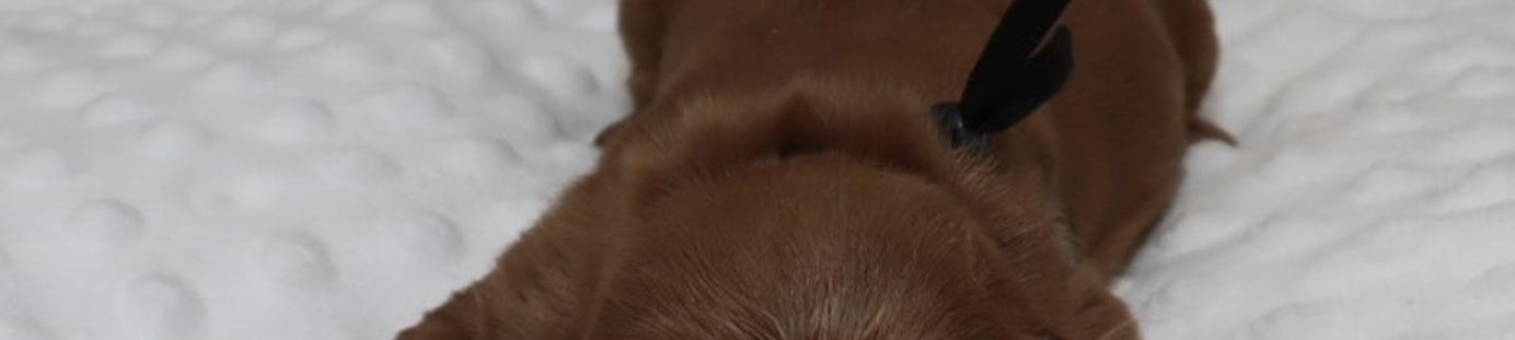 Darla is a perfect contribution to the reputation as one of the most beloved breeds, but her mahogany dark red color takes her allure to another level. With her deep, rich coat color, she stands out not only for her beauty but also for her exceptional temperament. She really brings so much joy and companionship to our family. We are proud to share her beautiful and healthy lineage with owners who appreciate these gentle happy souls, represented in the most stunning color.