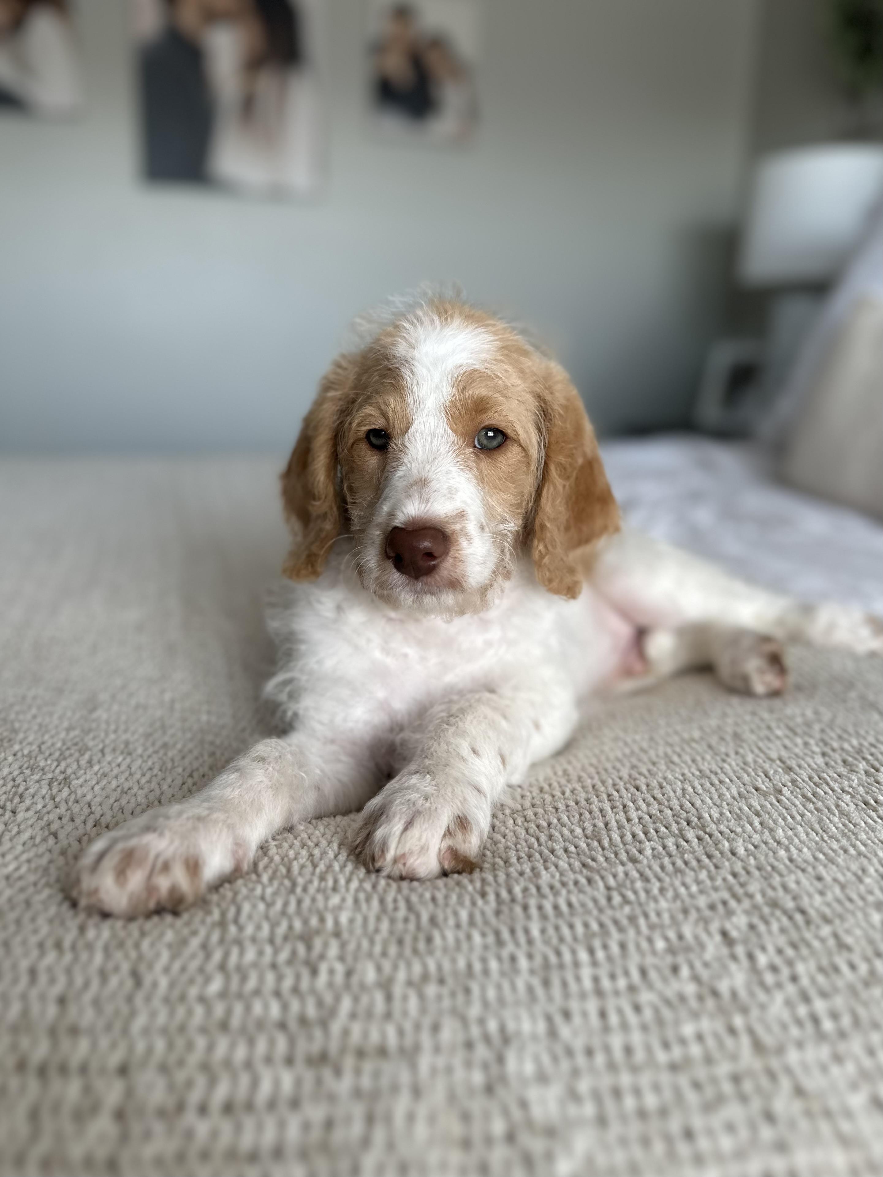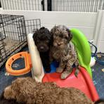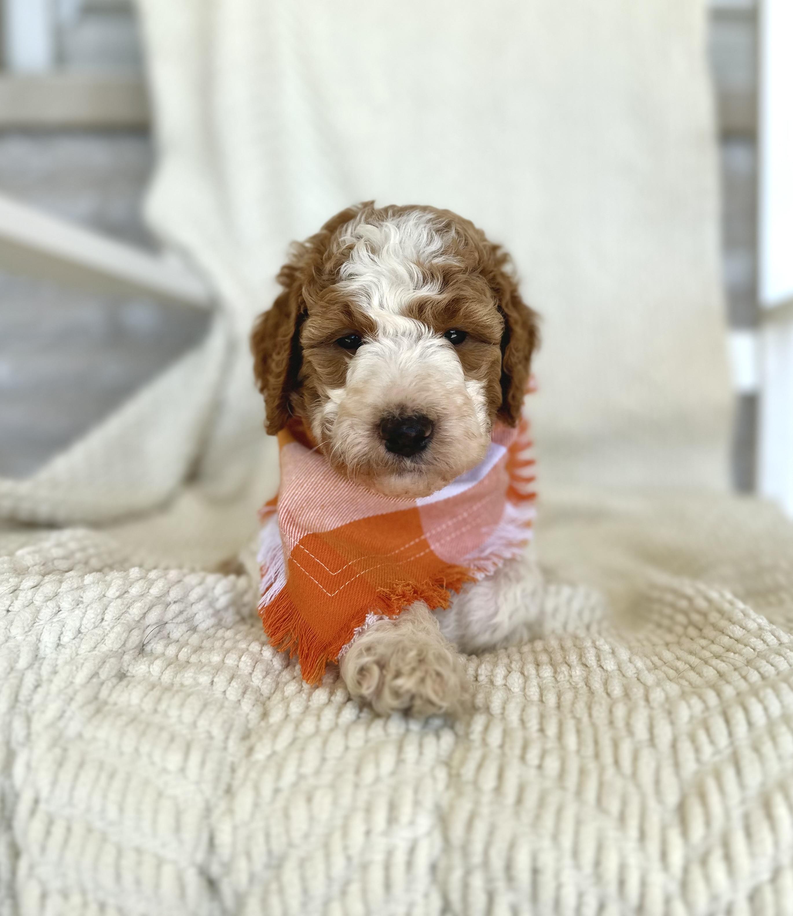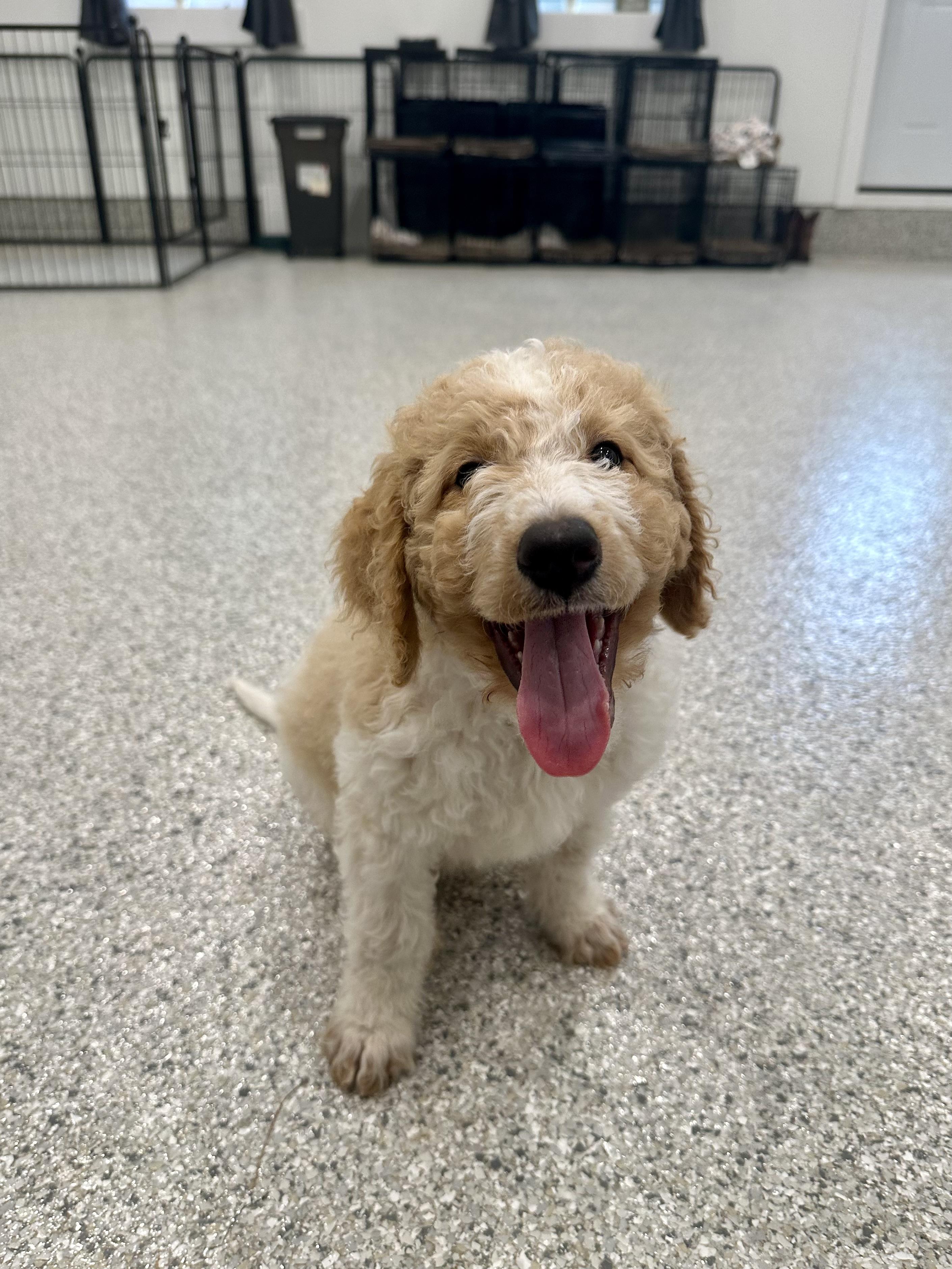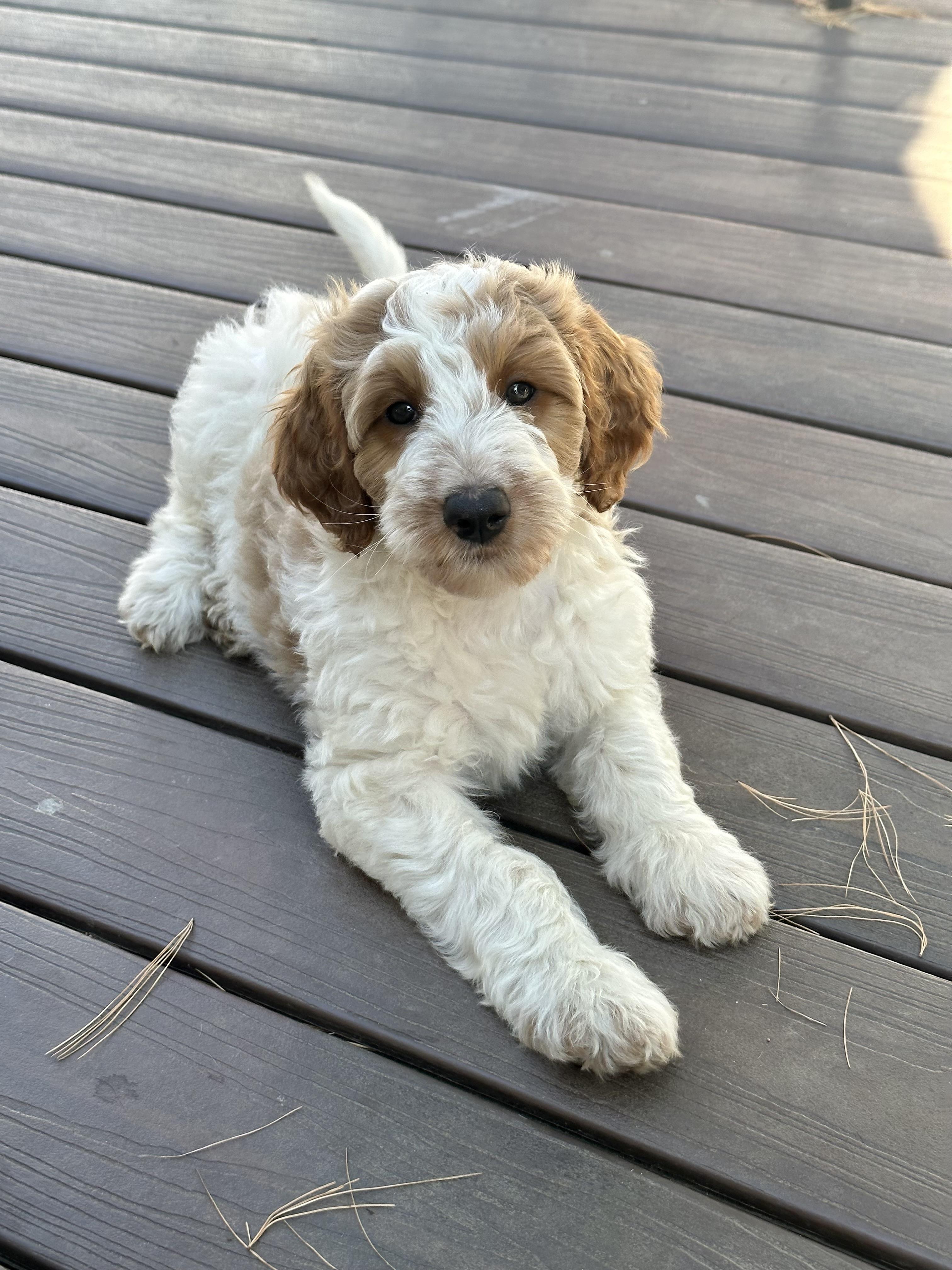 “Puppy is started on ENS and ESI beginning on day three through fourteen. -Puppy is raised following the Advanced Empowered Badass Breeder Curriculum. -Started on potty training at three weeks old. -Wormed thoroughly and clear fecal exam. -Examined and vaccinated by a licensed veterinarian. -Two year health guarantee -30 days of free Trupanion Insurance -Nuvet Labs samples -Baxter and Bella training discount code -Custom Raising Doodles Go Home package with the puppy’s current food, blanket with scent of mom and littermates, chew bone, variety of treats, toys, bandana, health certificate, print outs with tips of what we recommend for our puppies when taking them home, vet record of vaccine and dewormings, and more. Deposit will place you on our puppy selection list. Puppy selections begin at 6 weeks in order of deposits received.”