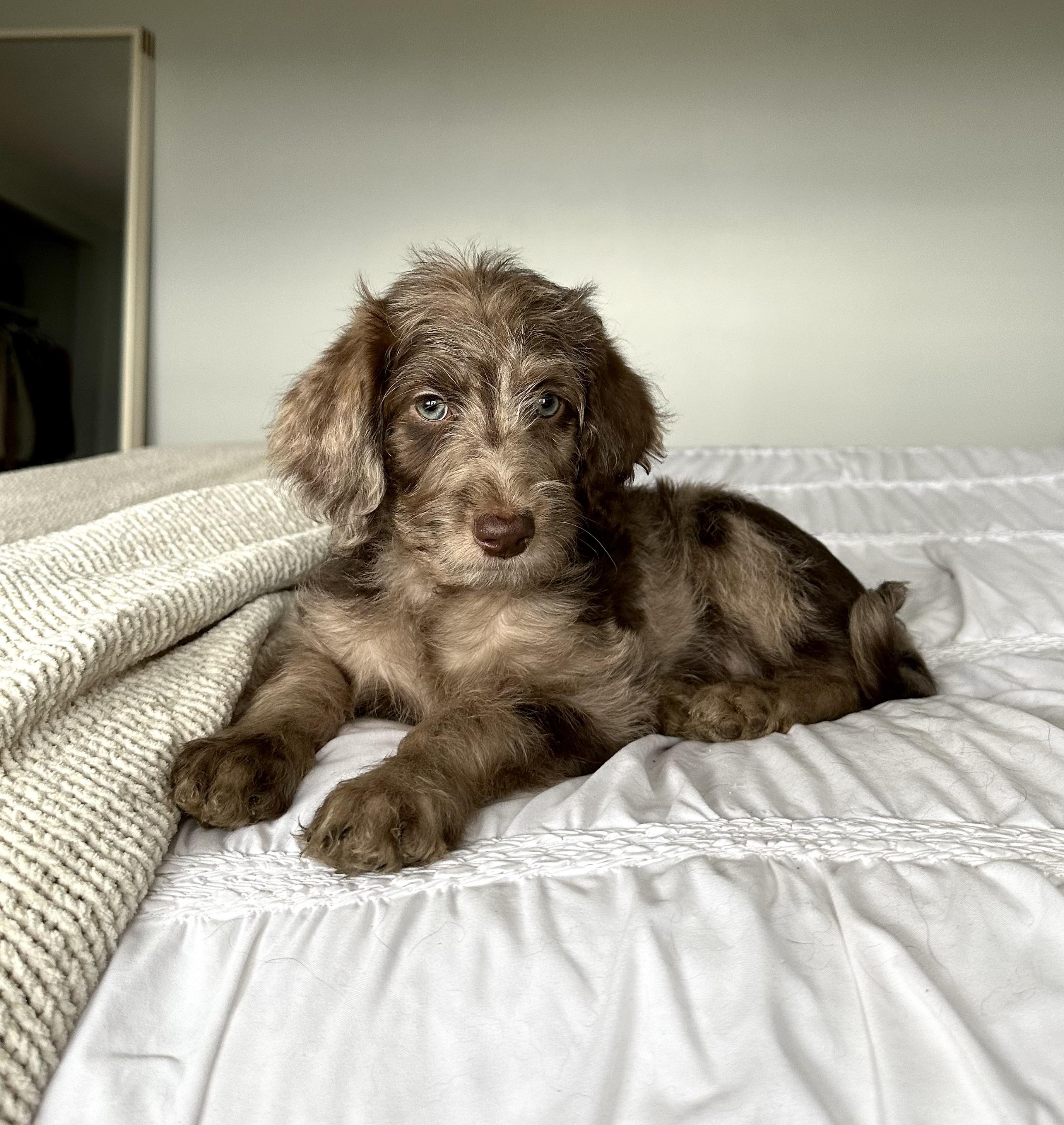 Our puppies include merle, apricot, cream, and chocolate. Colors will vary depending on the parent dogs.