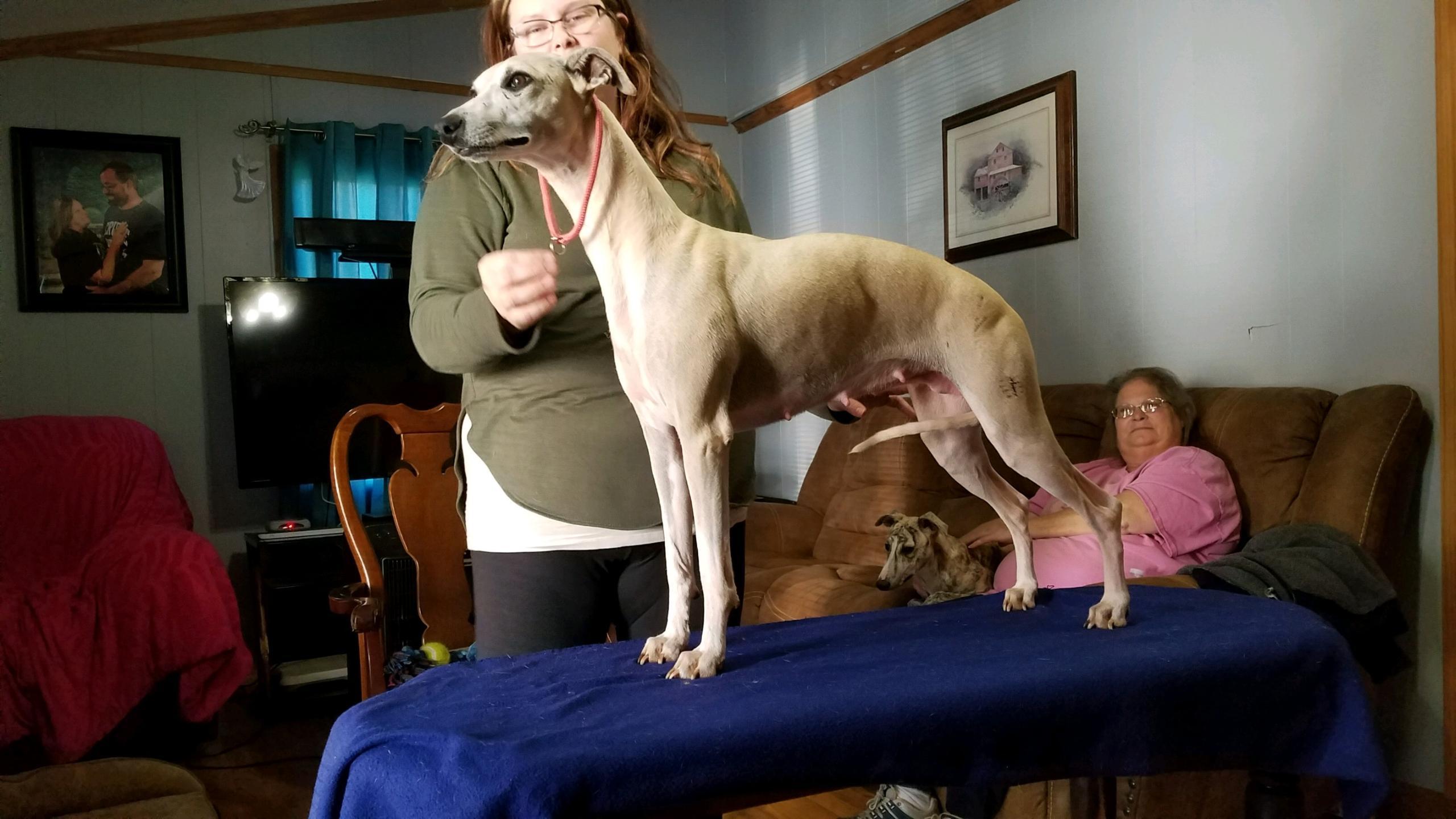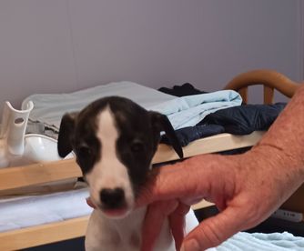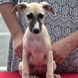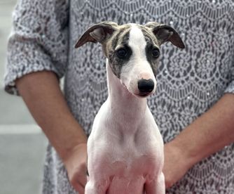Dixon is a male Whippet. Carefully selected as a great representative of his breed, Patty decided to make him part of their program. Patty has passed Good Dog’s screening process, which involved a review of their breeding practices, environment, and the mental and physical health of their dogs.