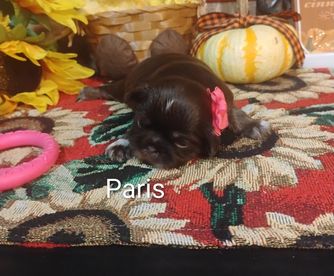 Me-Me is a female Shih Tzu. Carefully selected as a great representative of her breed, Paula/Richard decided to make her part of their program. Paula/Richard has passed Good Dog’s screening process, which involved a review of their breeding practices, environment, and the mental and physical health of their dogs.
