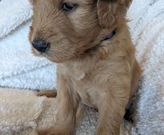 Purple Collar Female F1 Medium Sized Goldendoodle