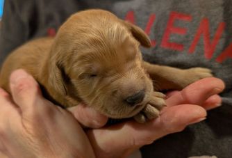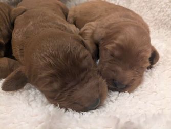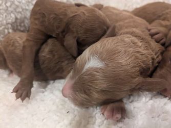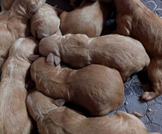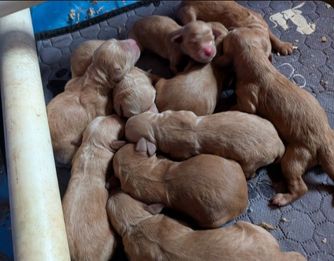 We just have one pair of AKC Moyen Poodles and 2 Retrievers. They are our families pets! We adore their babies and get to love on each of them. They get to roam on our acreage in the country and live the best dogs life! We raise F1 Goldendoodles and AKC Moyen Poodles.
