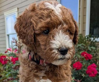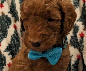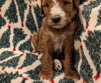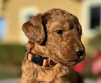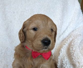 Boy 1 F1 Male Red Collar Medium Sized Goldendoodle