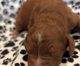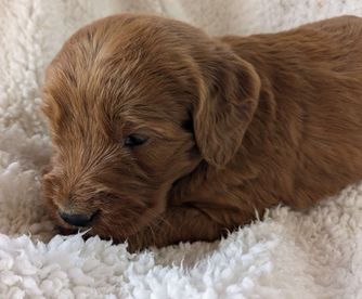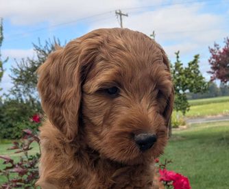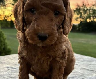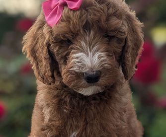 Our Poodle puppies are red. Goldendoodle puppies include cream and red. Colors will vary depending on the parent dogs.