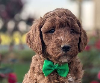 Boy 2 F1 Male Green Collar Medium -Sized Goldendoodle