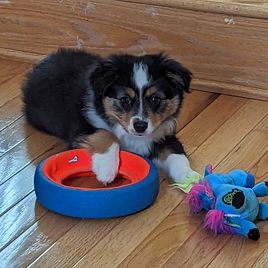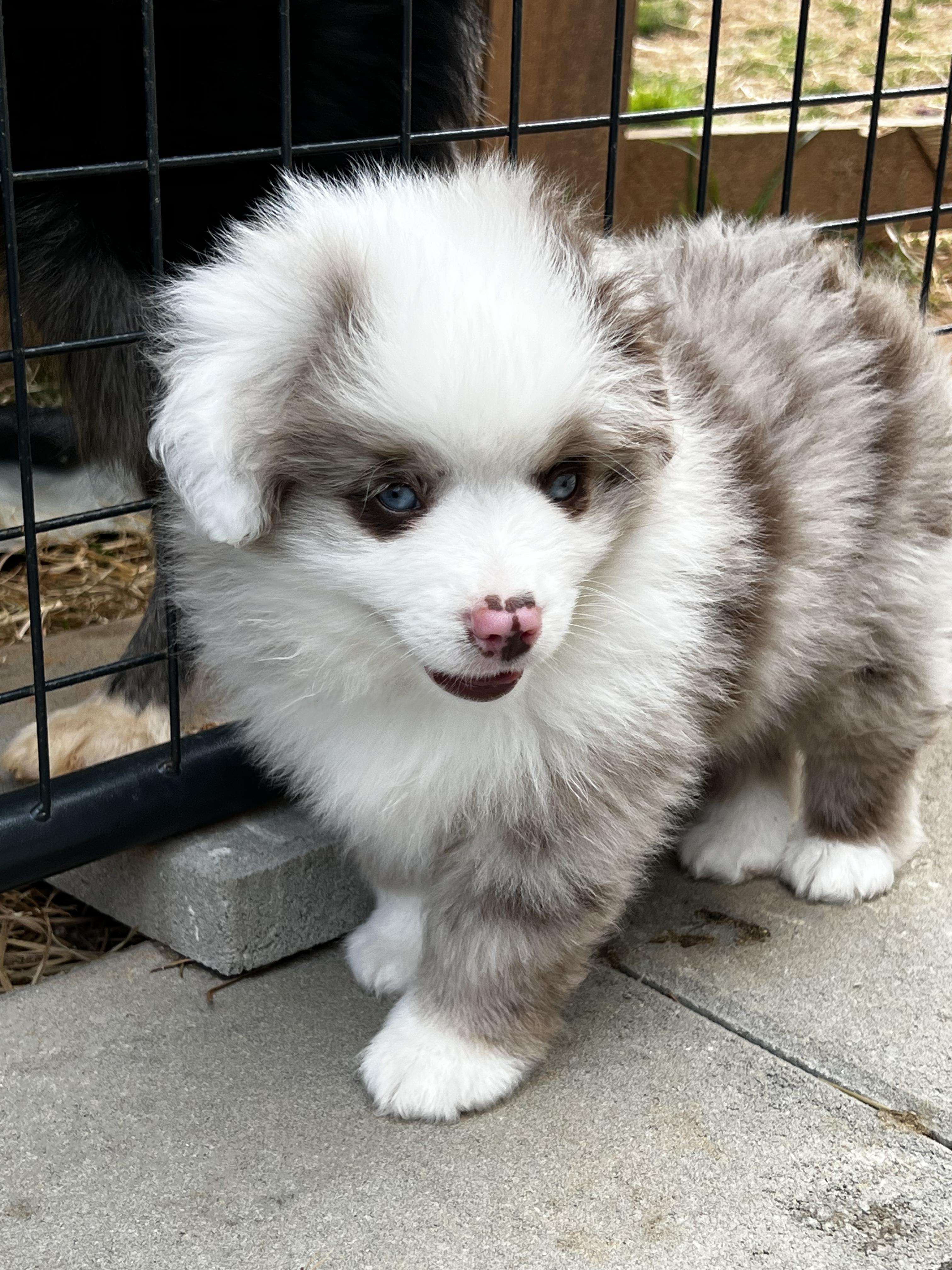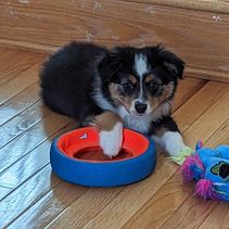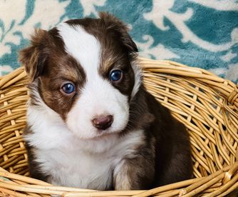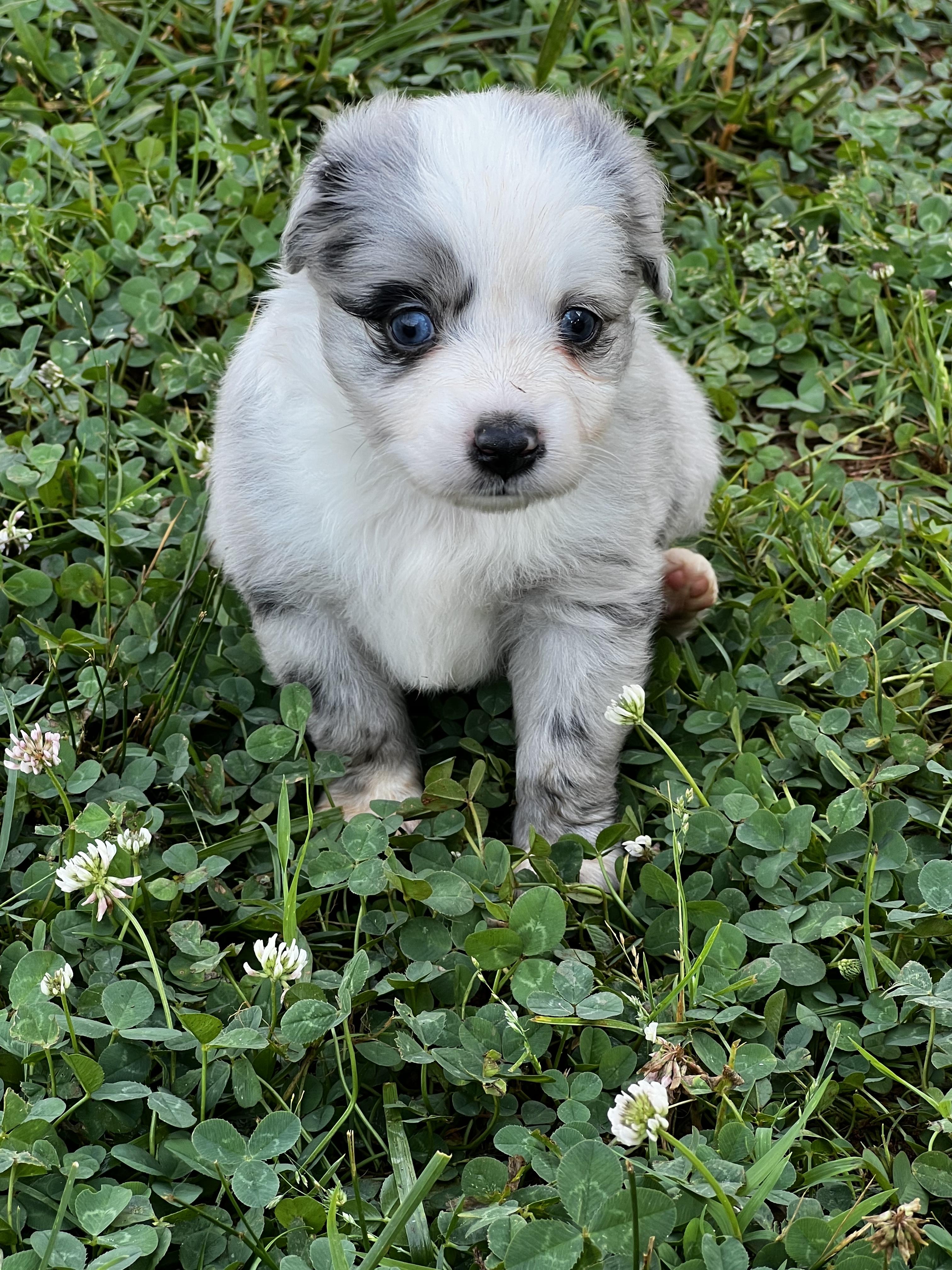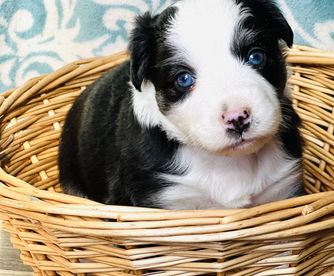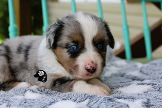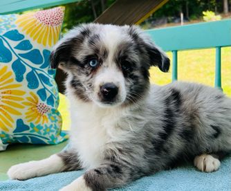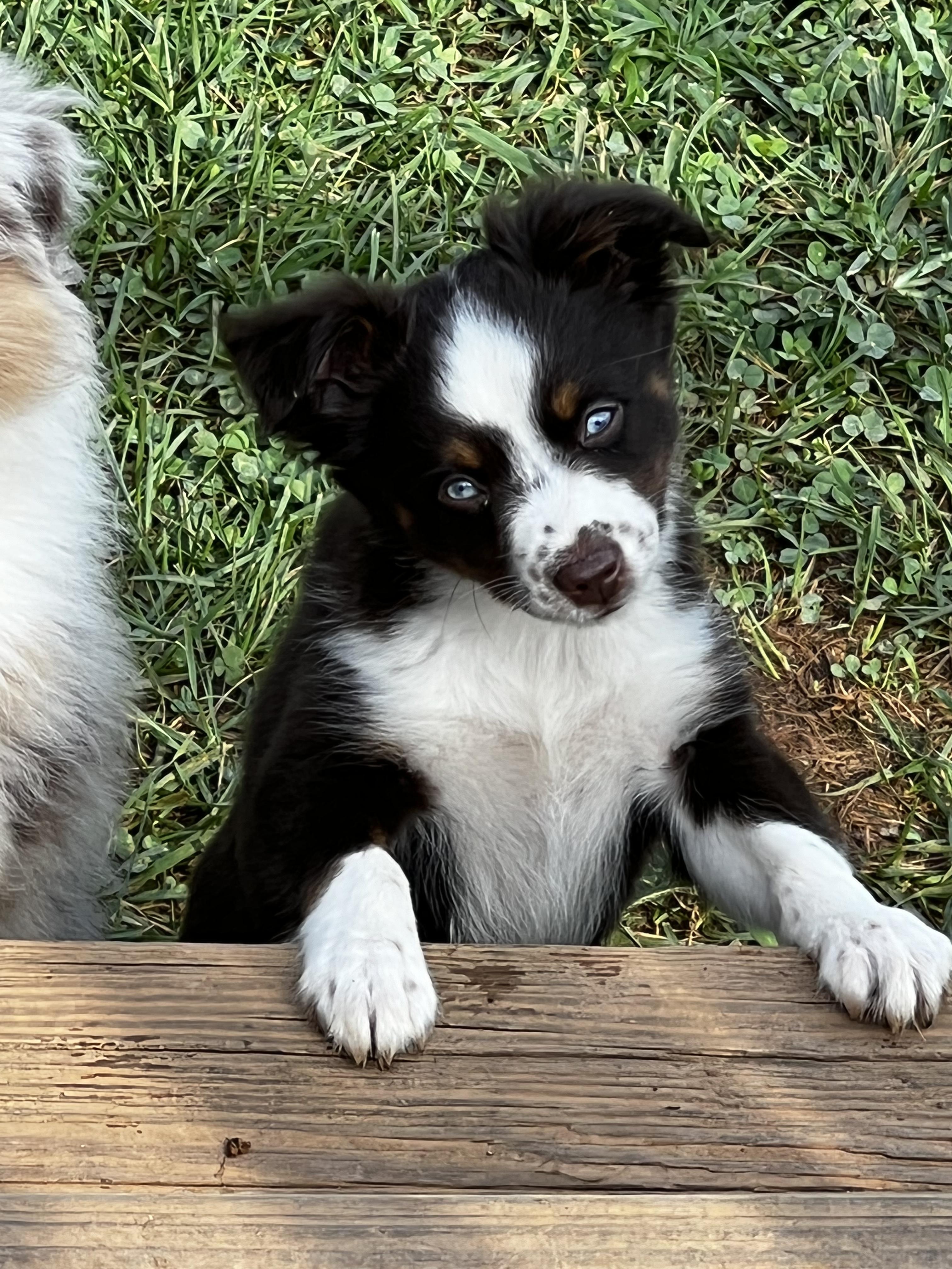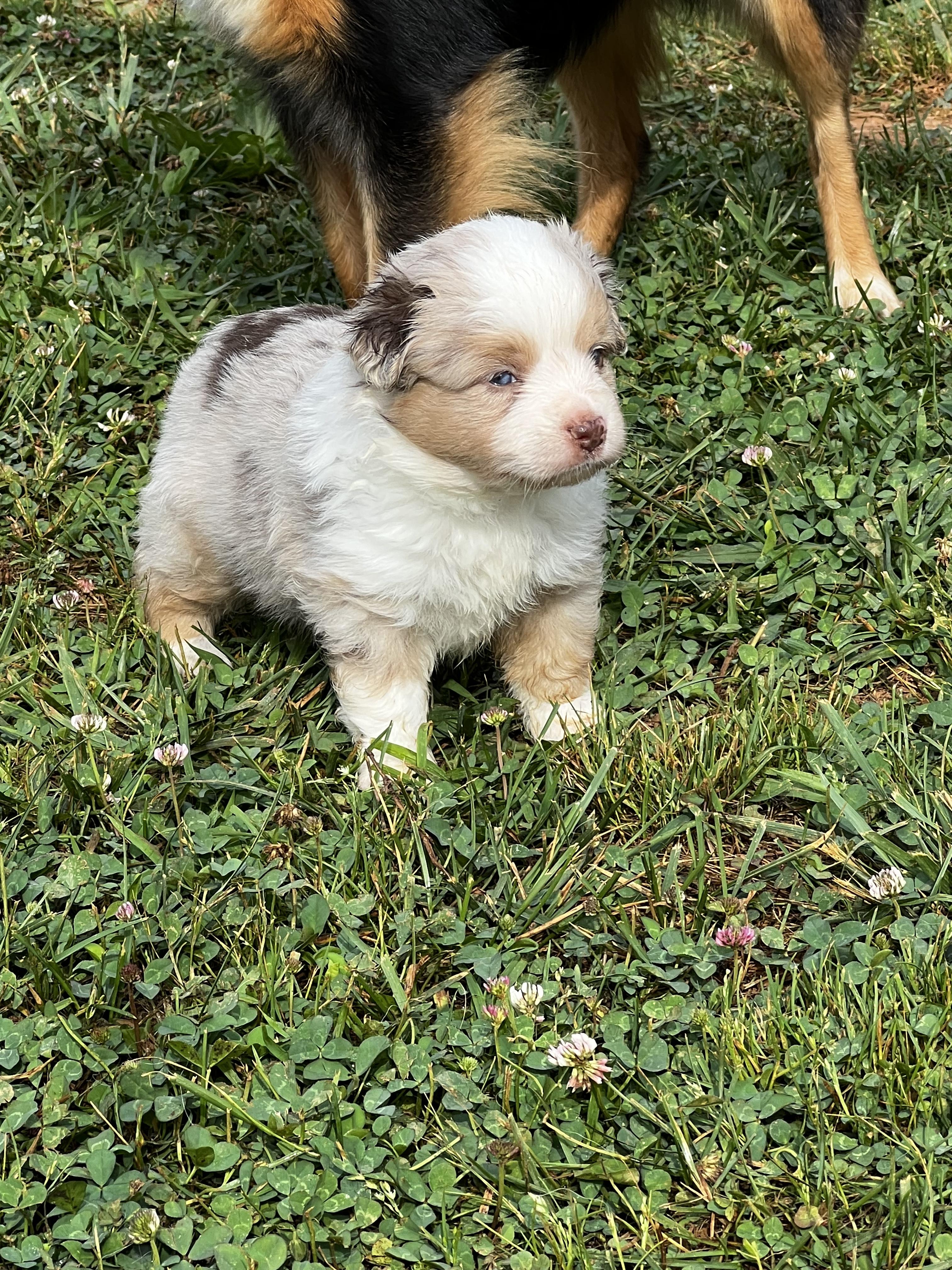 Miniature American Shepherd puppies include black tri, red merle, blue merle, and red. Colors will vary depending on the parent dogs.