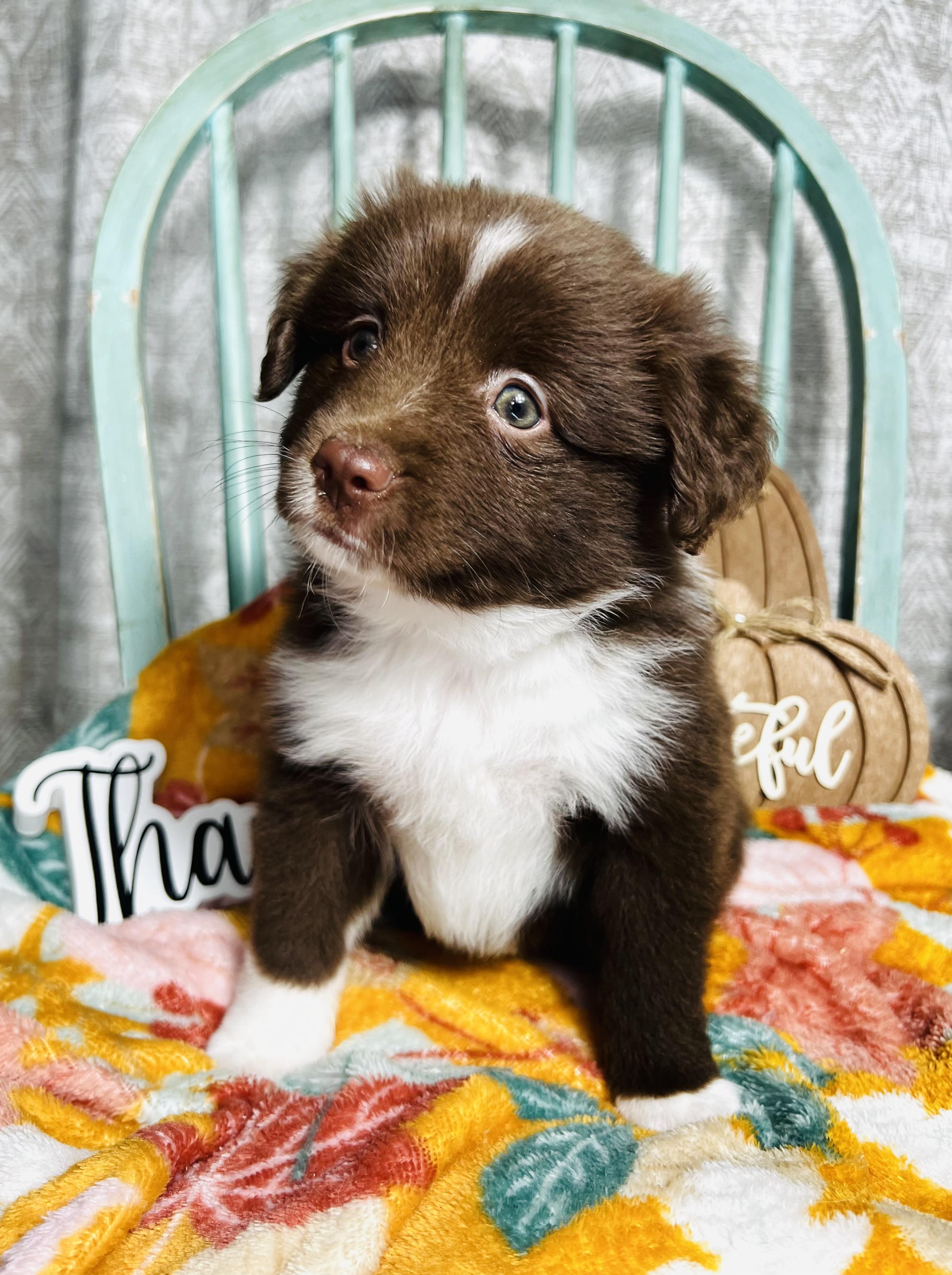 Miniature Australian Shepherd puppies are miniature size. Sizes will vary depending on the parent dogs.