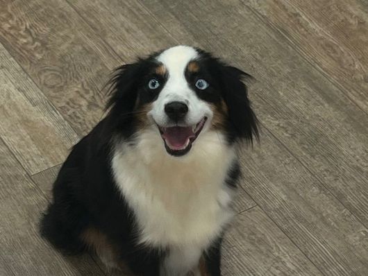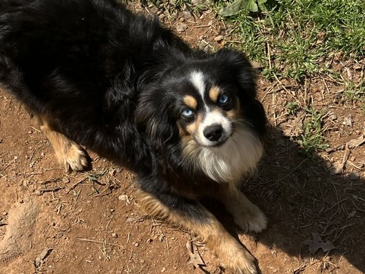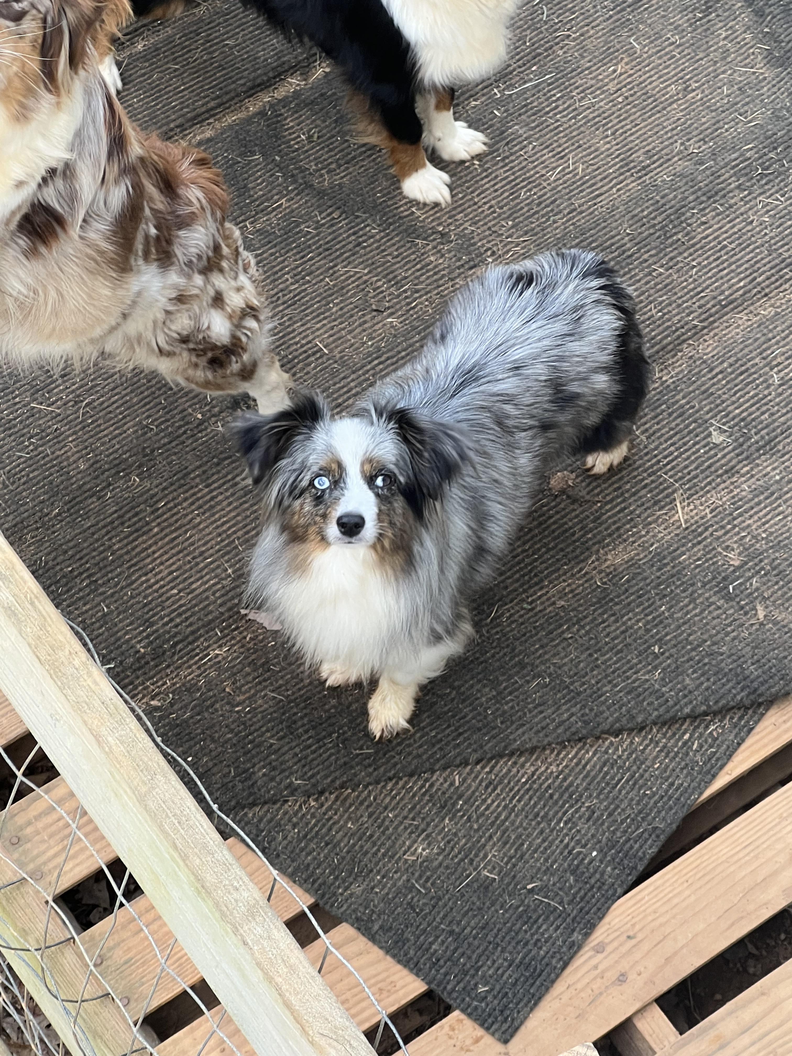 Darla is a beautiful black tri dilute toy Australian shepherd standing right at 14” and around 11lb.