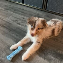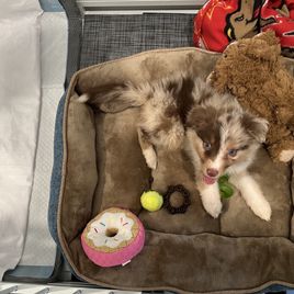 Paige was great. She answered our emails within hours and brought her 2 six-month-old puppies to our house. We loved both dogs but sadly could only get one of them. Our new found furry friend is adjusting just great to our home and lifestyle. She (Bailey) was just at the local vet. and given her rabies and Bordetella shots. She's a very healthy dog and full of life. We made the right decision to get a puppy from Paige, and we highly recommend her to anyone looking to add an Aussie to their family.