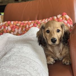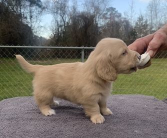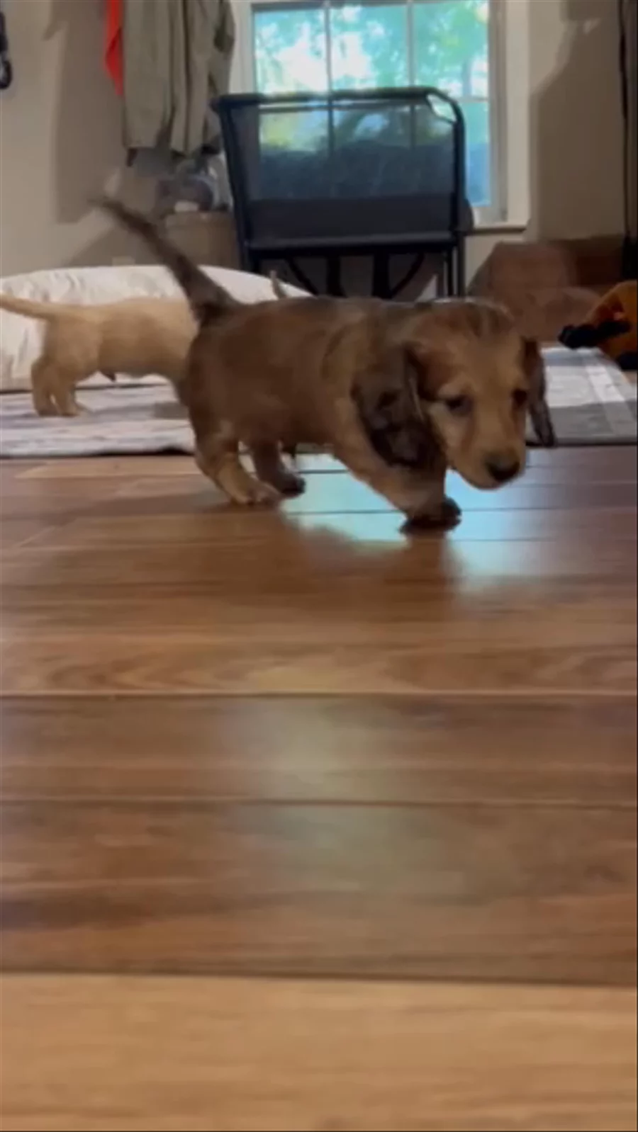 Getting my puppy from Ronnie was an incredible experience! It’s evident that he has a deep love for his dogs and a wealth of knowledge about the dachshund breed. His thorough vetting process for potential puppy homes was a reassuring sign, and he was incredibly informative throughout the process. When I picked up my puppy at 9.5 weeks, Ronnie gave me a fantastic take-home bag filled with essential puppy supplies and medical information. This comprehensive package set me and my puppy up for a smooth transition into home life. My puppy was already around 90% house-trained and had learned to use a bell to go to the potty after just one day at home. He also knew basic commands like “sit,” “down,” and “roll over,” making it easy to teach him new tricks. After about a month of living at home, he’s now crate-trained as well. His disposition is simply fantastic. He’s incredibly confident and always up for any activity. He’s recently discovered his love for swimming, which is a fun and exciting hobby for both of us. I believe his confidence stems from the amount of care and socialization he received from Ronnie and his family. Overall, I would highly recommend getting a puppy from Ronnie, and I would definitely consider getting another puppy from him in the future!