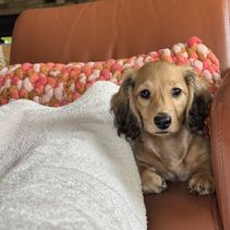 I love my little pup! She was so well cared for and socialized. I was able to spend time in the home with my puppy, her litter mates, and the adult dachshunds. These dogs are, obviously, members of the family. Ronnie is a wealth of knowledge about training, competing, and breeding. He provides a very rich environment for his dogs with many activities that transfer to training; such as, bells suspended from the ceiling with toys attached. When the puppies ring the bell, Ronnie and Janie come running to set the expectation that ringing a bell will get a human's attention which families can use in potty training. My puppy's transition to our home was pretty easy. Janie had endured some sleepless nights so that my little girl would be ready to sleep alone away from her brothers. She has been up to some mischief and is a bit of a daredevil, reflecting her intelligence and the confidence provided by Ronnie and Janie. I feel really good about purchasing my pup from RAMS Kennels.