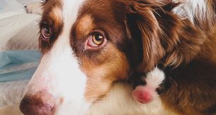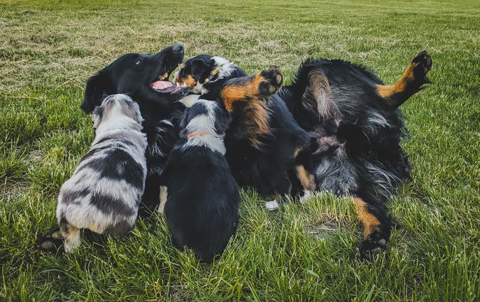 Bagel is a female Australian Shepherd. Carefully selected as a great representative of her breed, Rana decided to make her part of their program. Rana has passed Good Dog’s screening process, which involved a review of their breeding practices, environment, and the mental and physical health of their dogs.