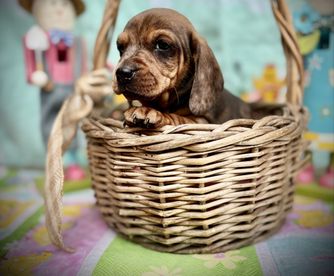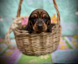 Our puppies include red, wild boar, chocolate, wild boar and tan, black and tan, and dapple. Colors will vary depending on the parent dogs.