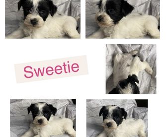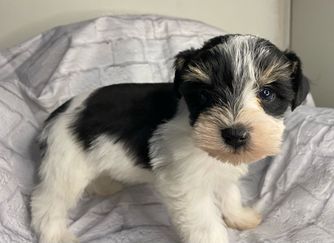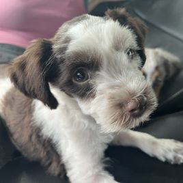 Our Miniature Schnauzer puppies include wheaten, white, parti, liver, salt and pepper, and black. Cockapoo puppies include red and white, red, buff, and buff and white. Schnoodle puppies include white and apricot. Colors will vary depending on the parent dogs.