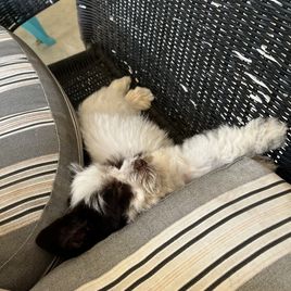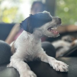 Scout is a very sweet, loving boy. He loves to be a lap dog but also to be outside playing with our family.