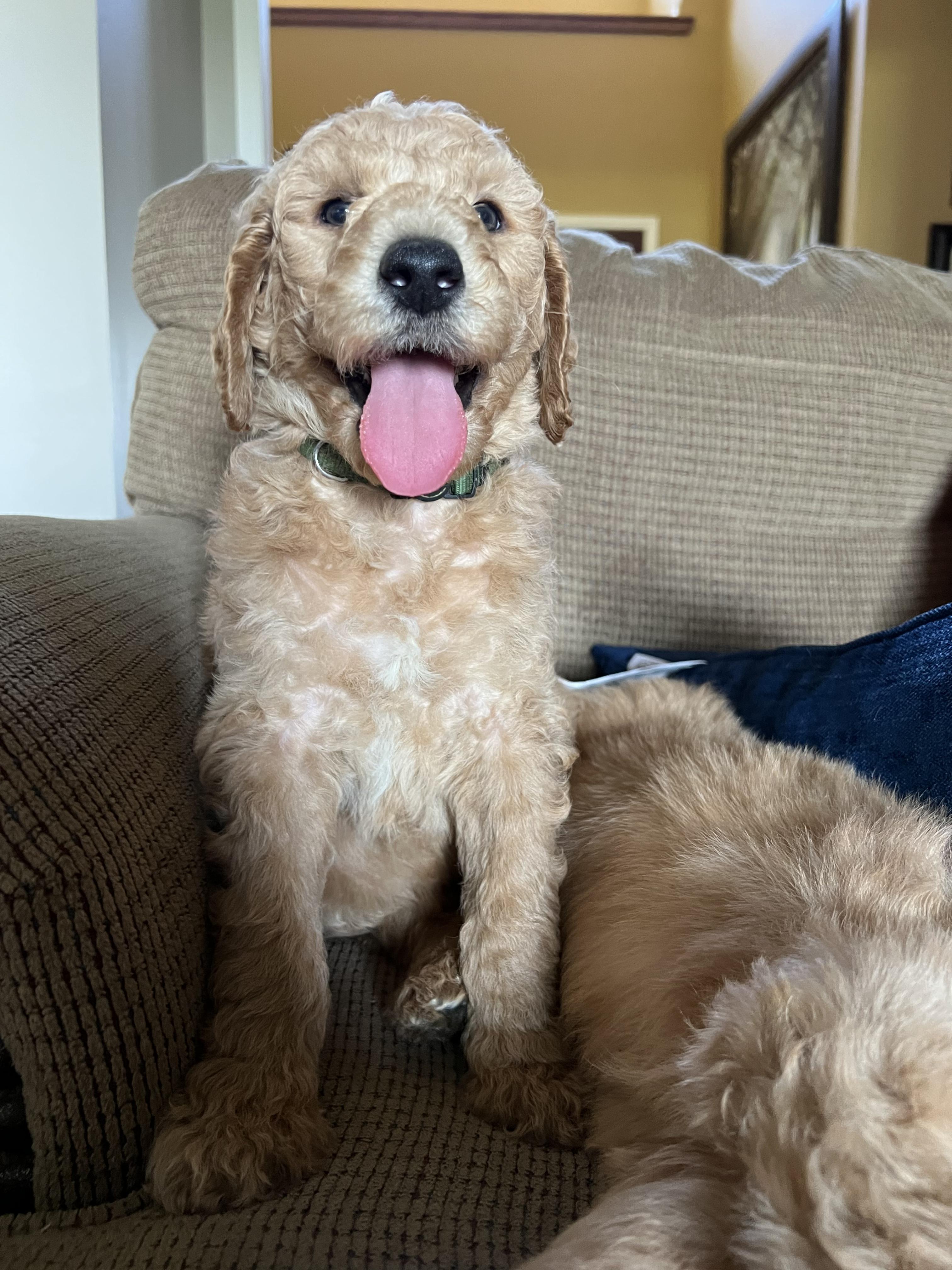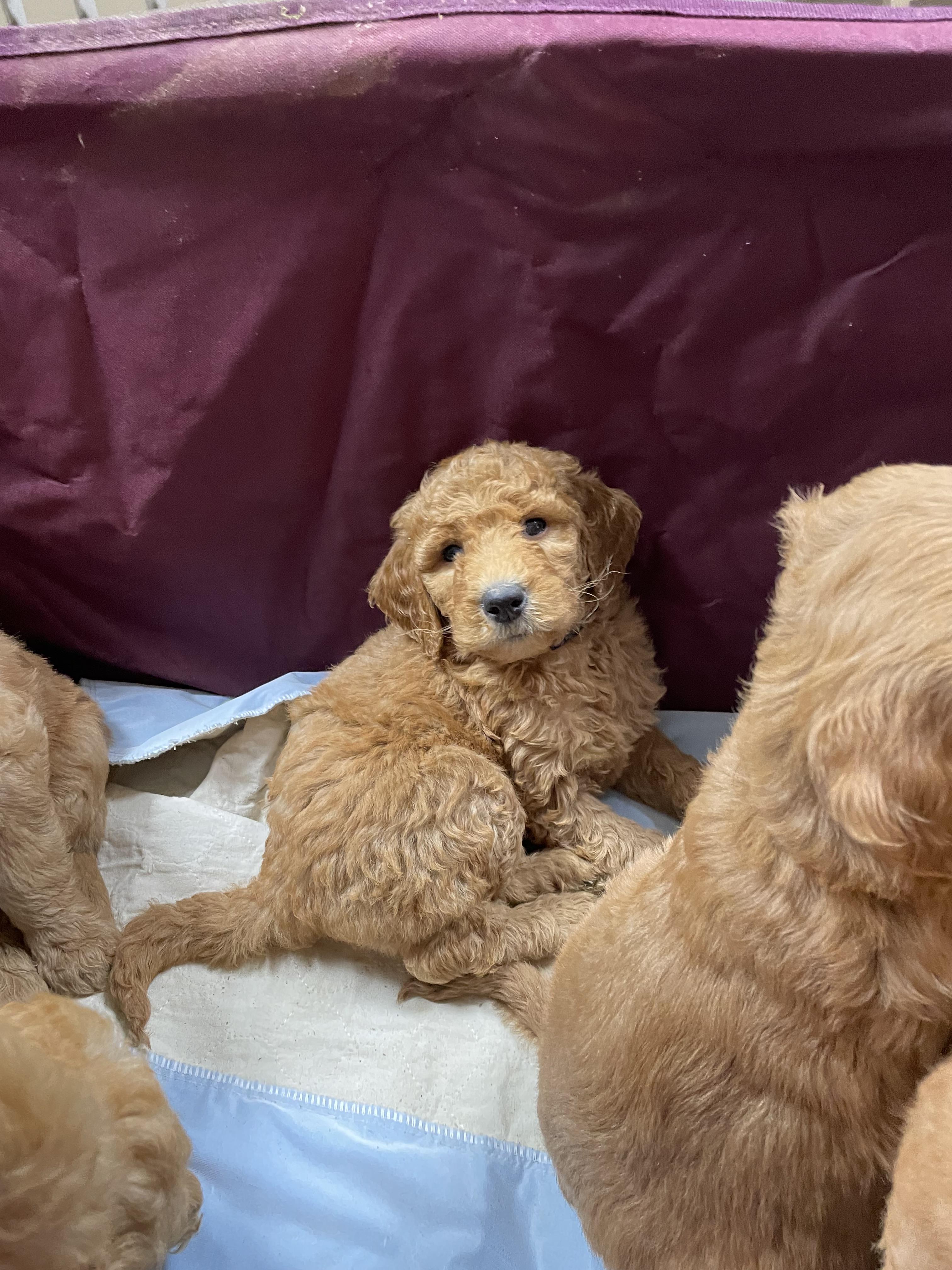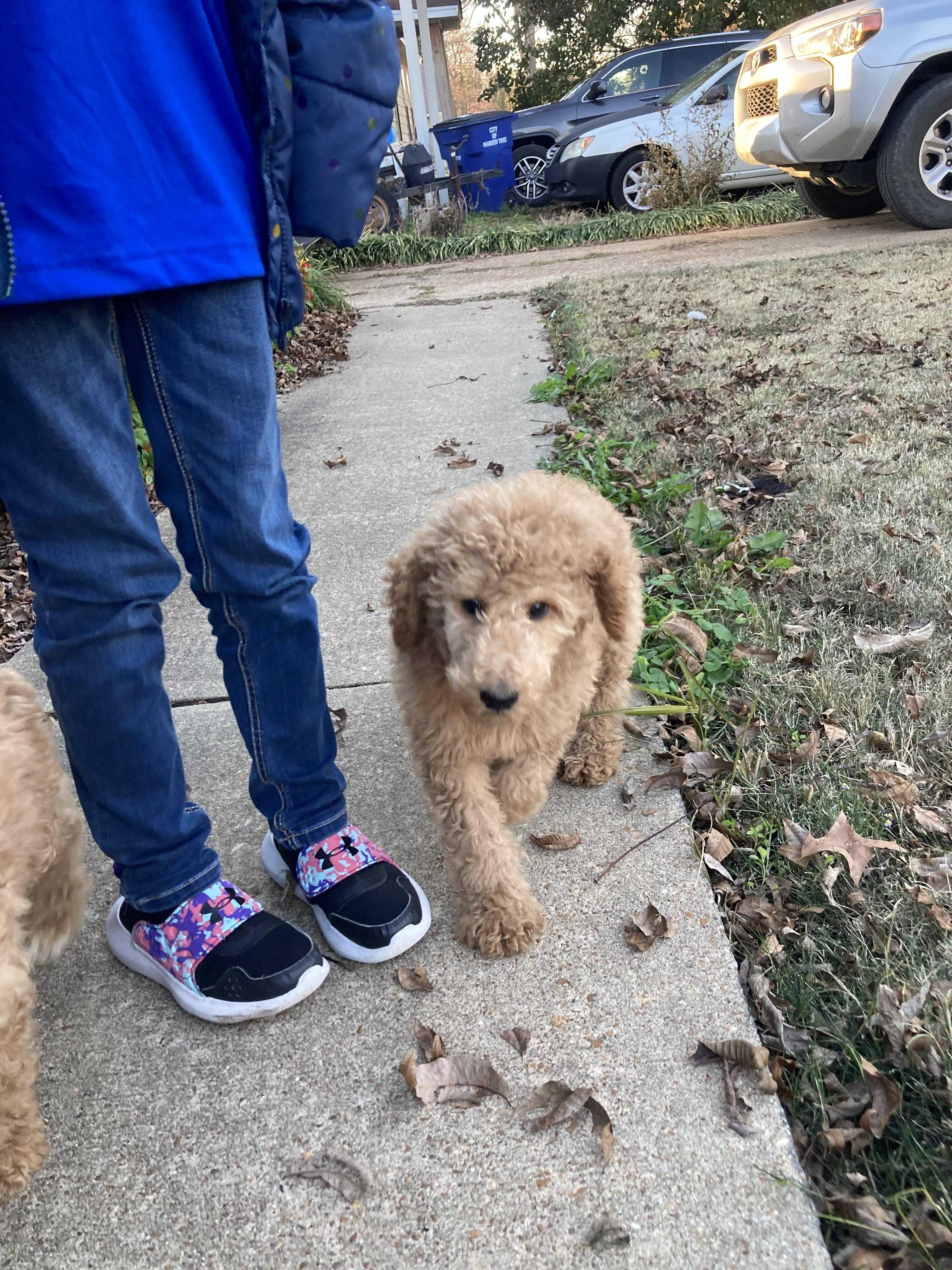 Goldendoodle puppies are standard size. Poodle puppies are standard size. Sizes will vary depending on the parent dogs.