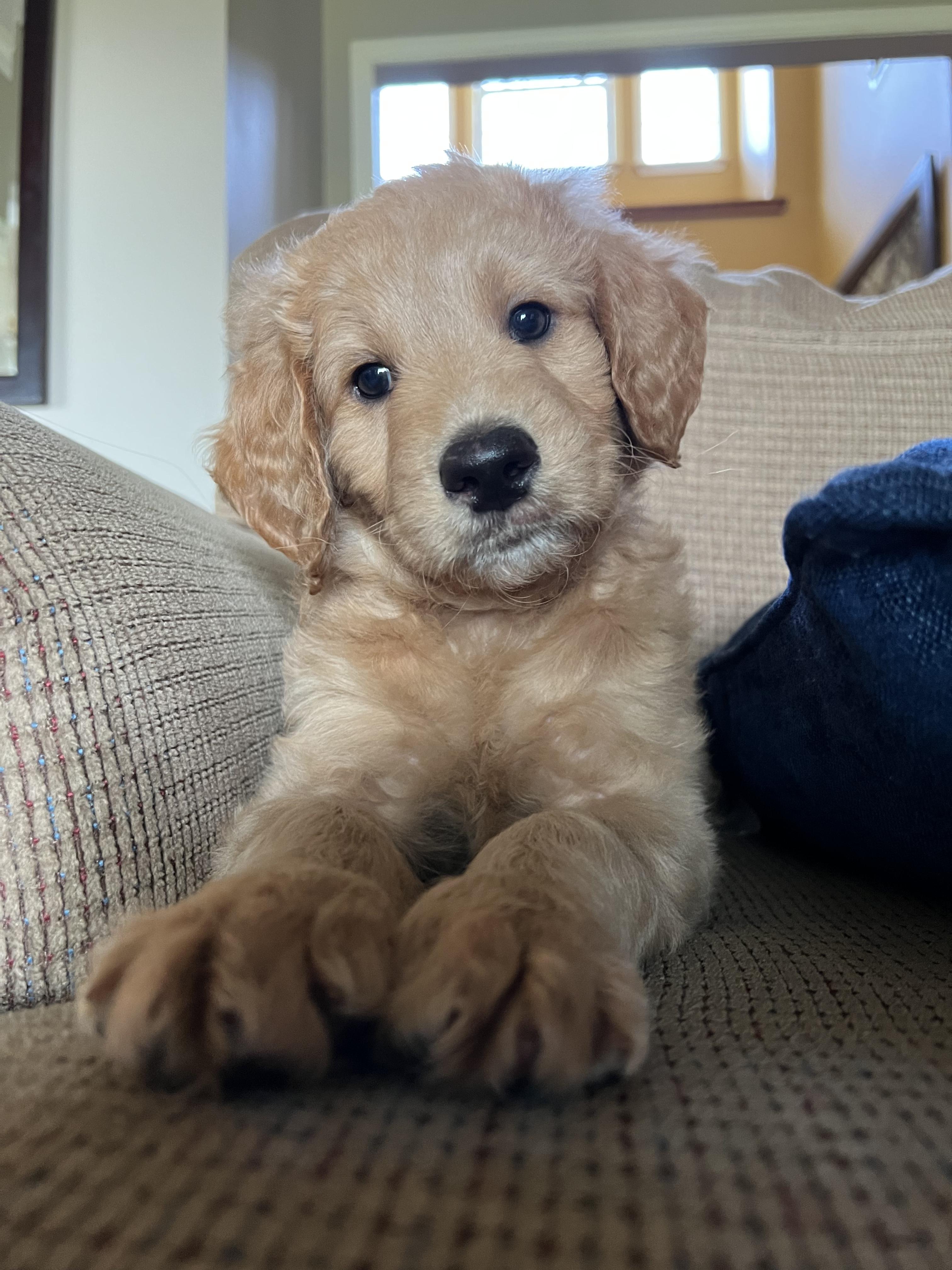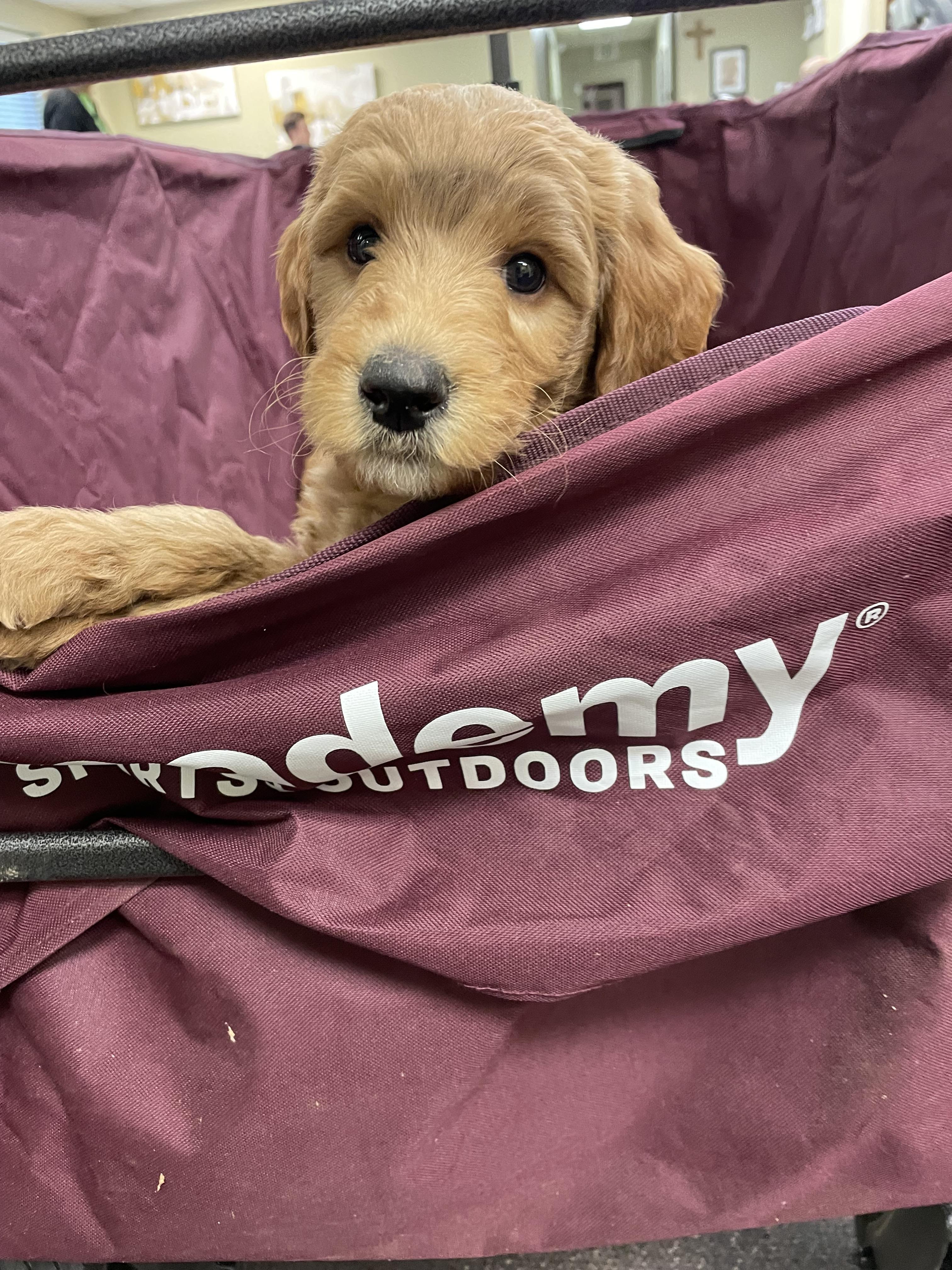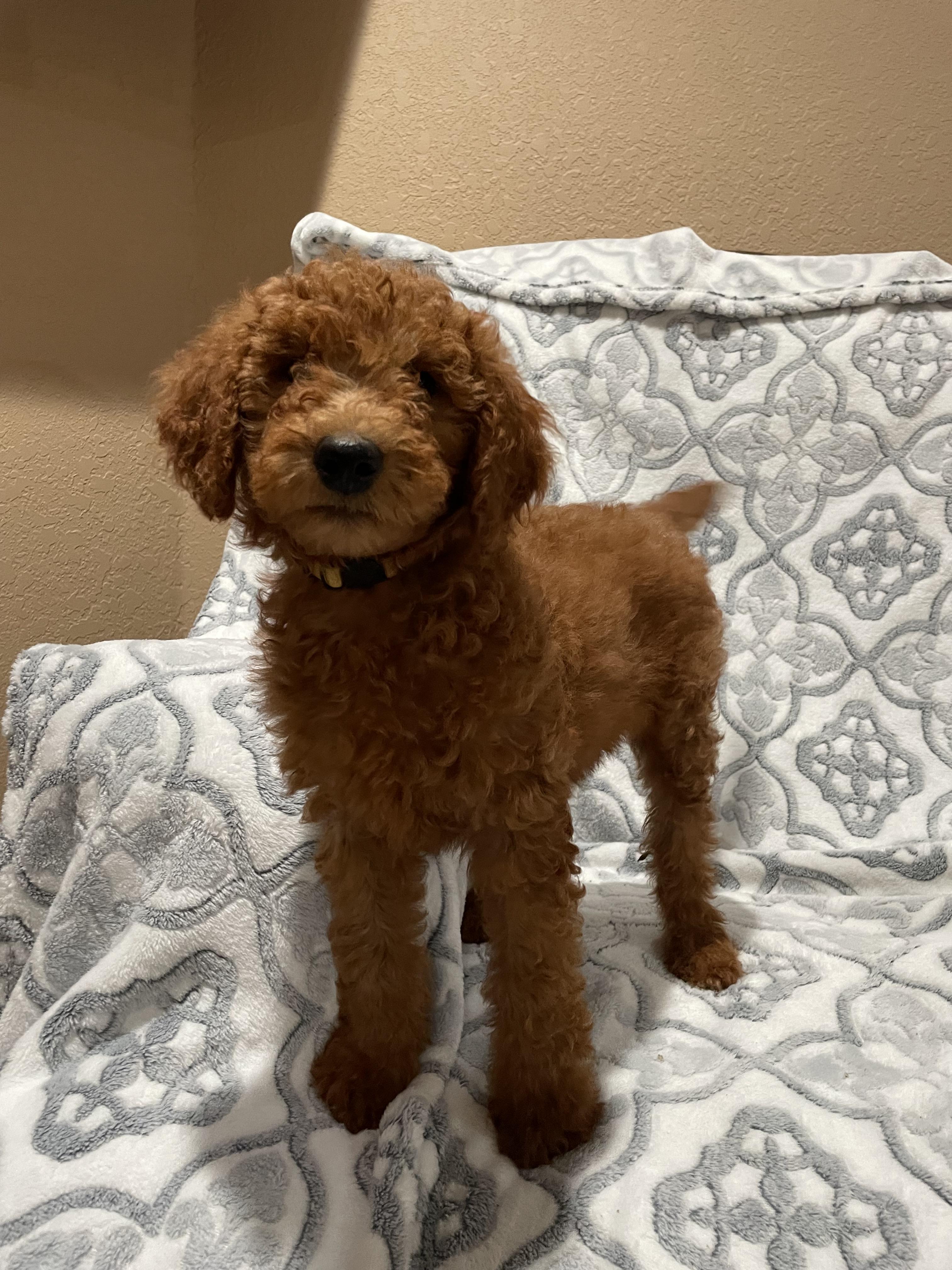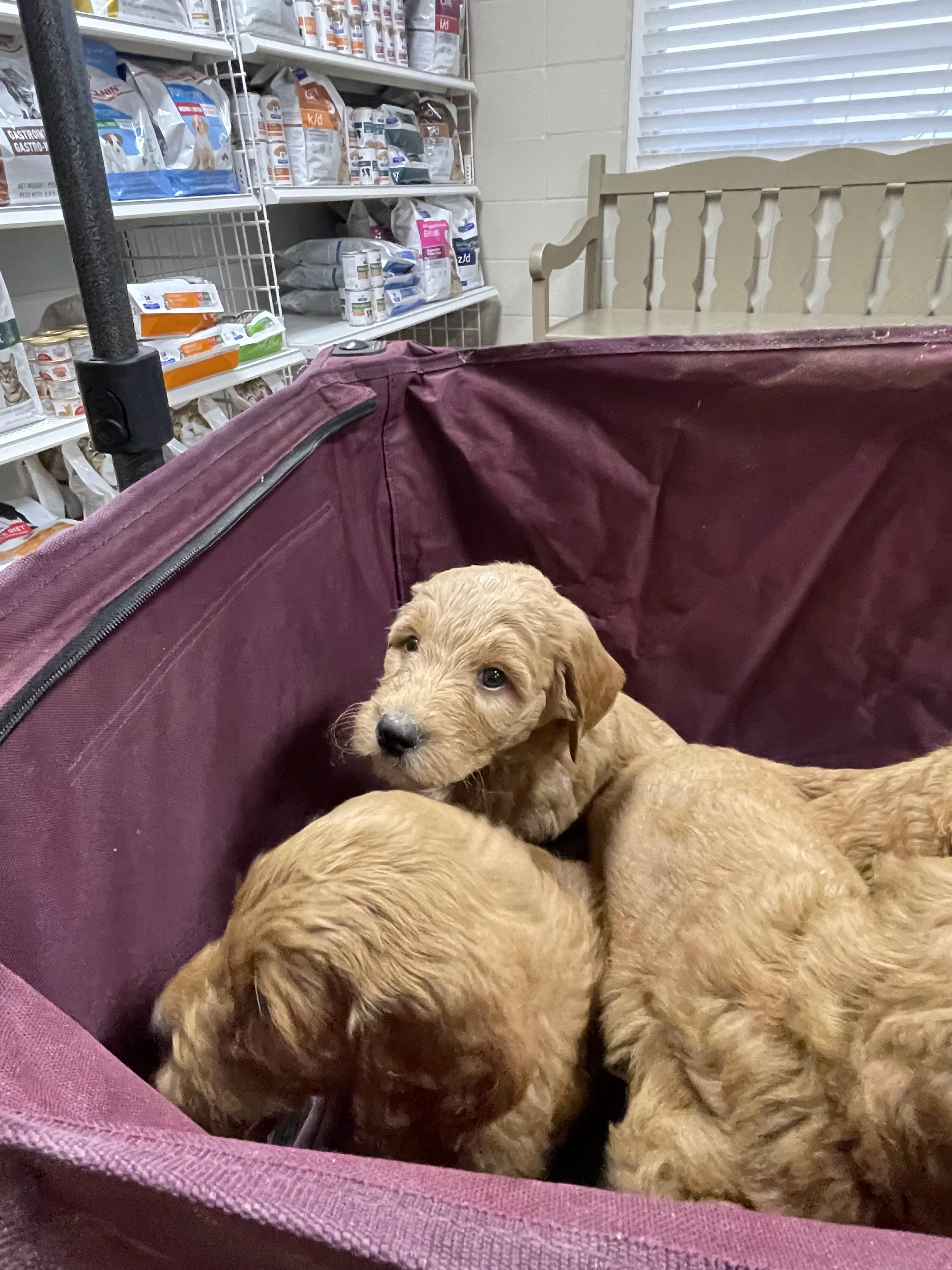 Goldendoodle puppies are standard size. Poodle puppies are standard size. Sizes will vary depending on the parent dogs.