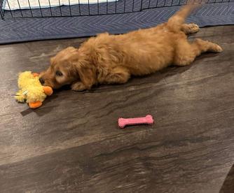 Kona is a female Irish Doodle. Carefully selected as a great representative of her breed, Morgan decided to make her part of their program. Morgan has passed Good Dog’s screening process, which involved a review of their breeding practices, environment, and the mental and physical health of their dogs.