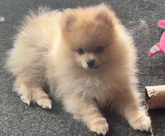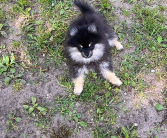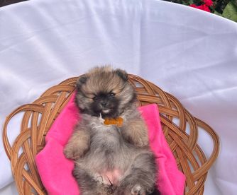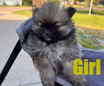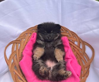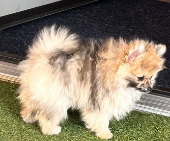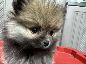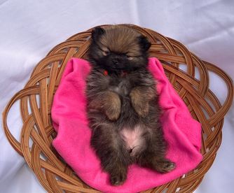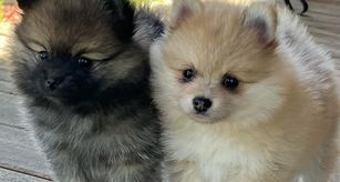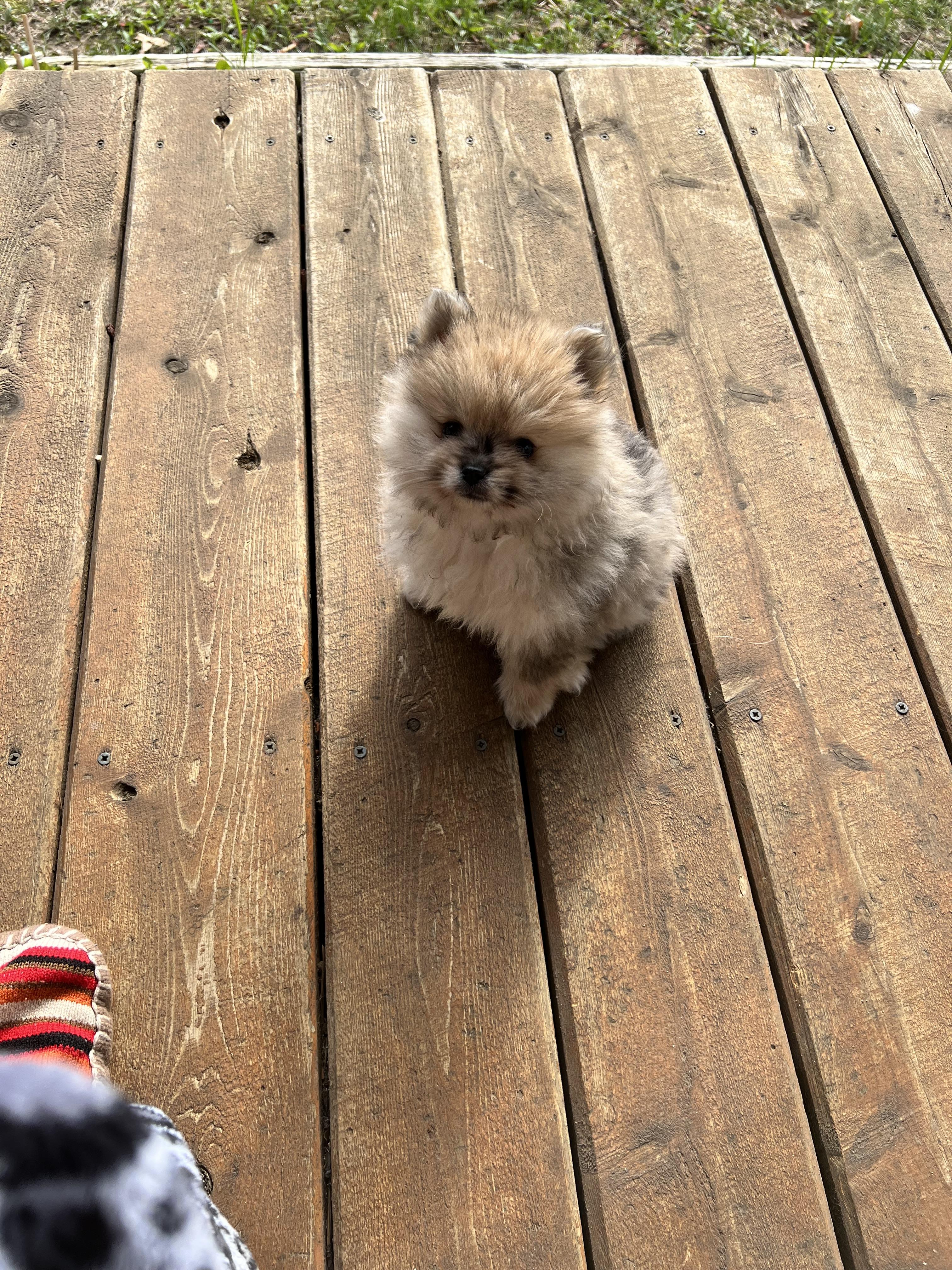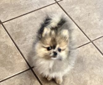 Our Pomeranian puppies include blue merle and chocolate merle. Colors will vary depending on the parent dogs.
