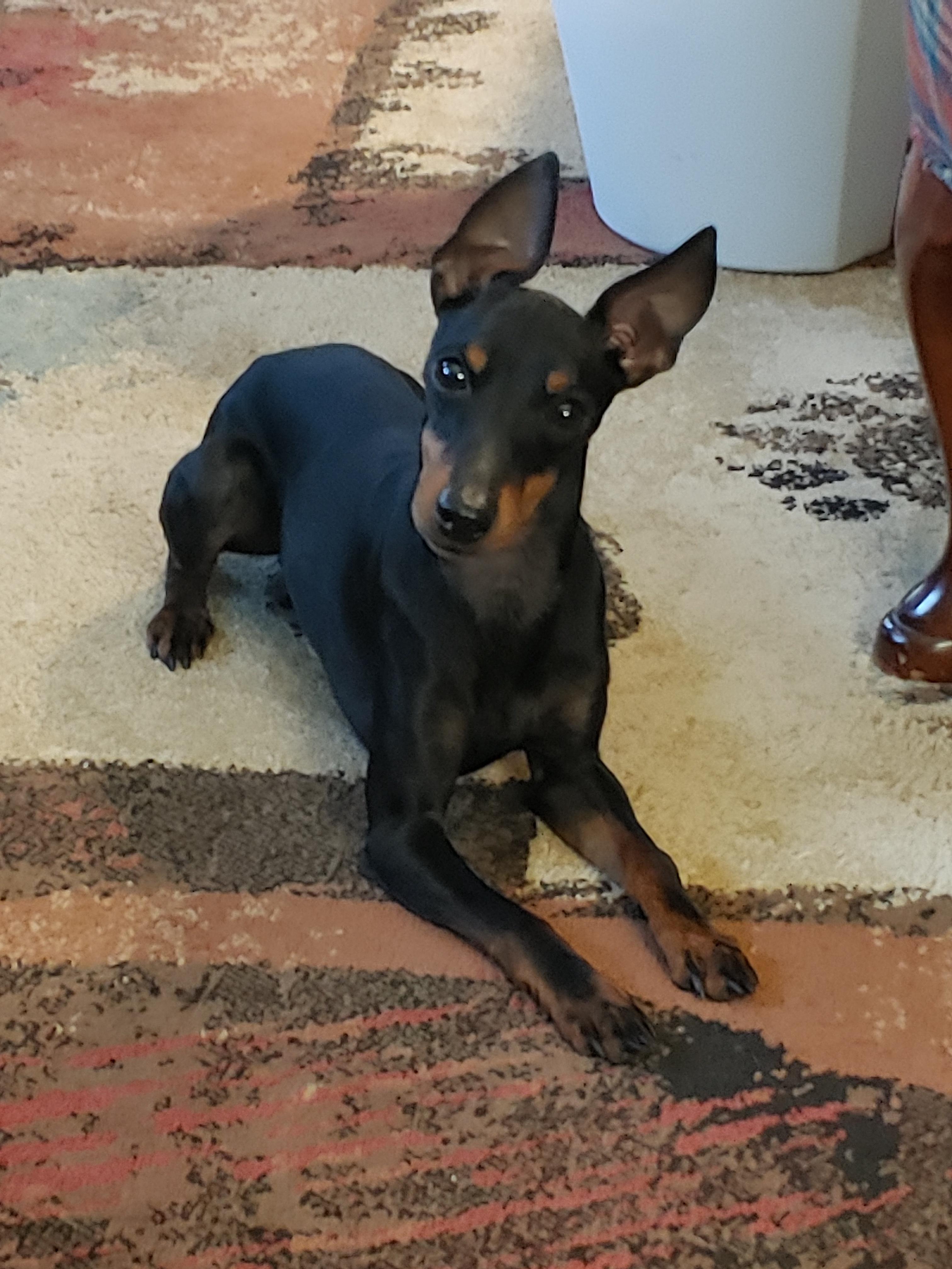 Alfie is a male Manchester Terrier about 5 years old. Carefully selected as a great representative of his breed, Lorrie decided to make him part of their program. Lorrie has passed Good Dog’s screening process, which involved a review of their breeding practices, environment, and the mental and physical health of their dogs.