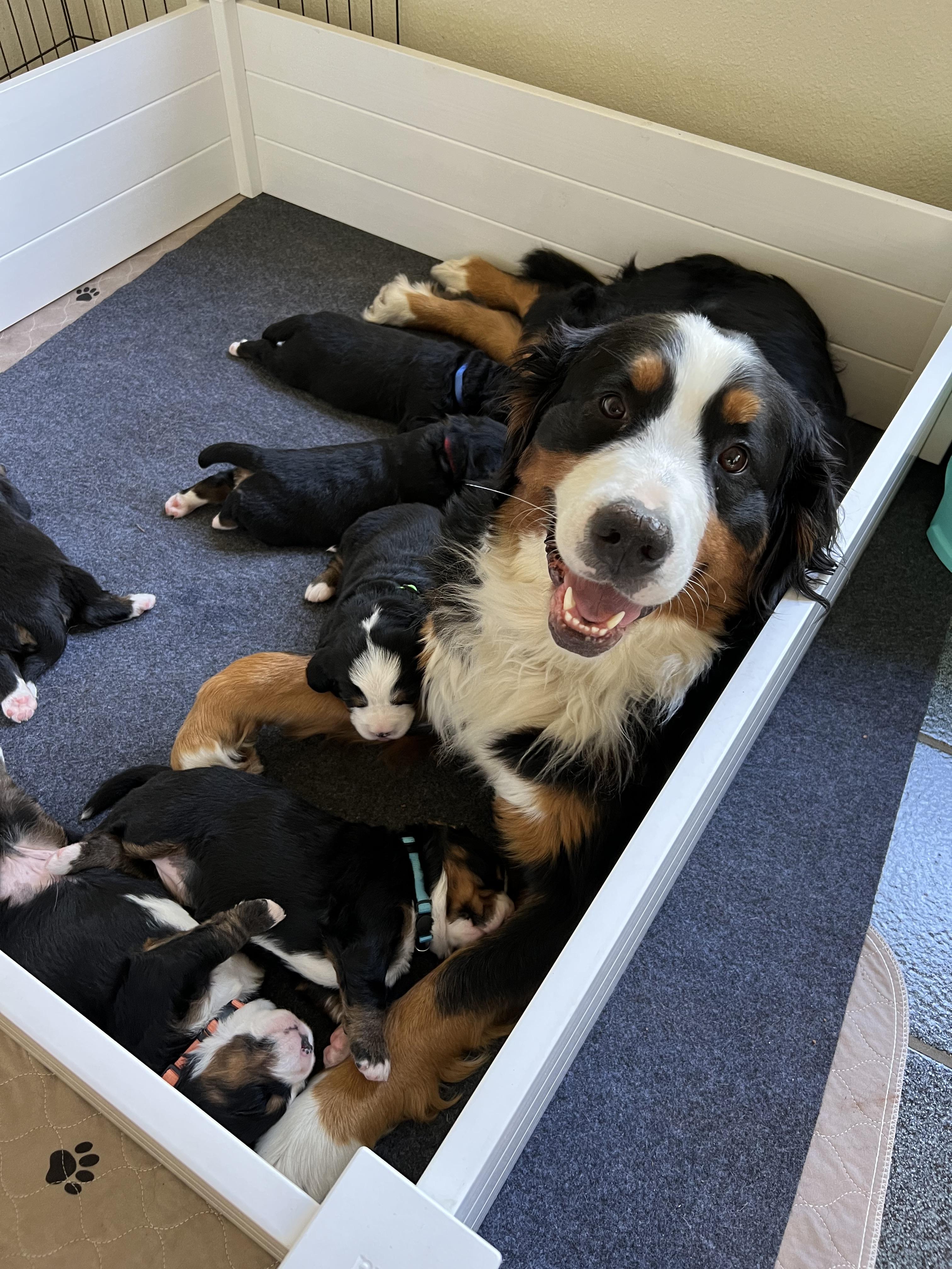 Roxy is a female Bernese Mountain Dog. Carefully selected as a great representative of her breed, Brittany decided to make her part of their program. Brittany has passed Good Dog’s screening process, which involved a review of their breeding practices, environment, and the mental and physical health of their dogs.