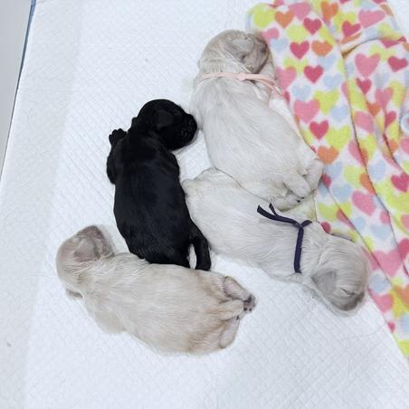 Our adult dogs have been DNA & health tested through Embark or GenSol. Our puppies will go to their new homes when they are at least 8 weeks old. They will be given a microchip, a Florida health certificate, dewormer, age appropriate vaccinations and a one year health guarantee. They will go to their new homes with a bag of puppy food, toys, and a blanket.