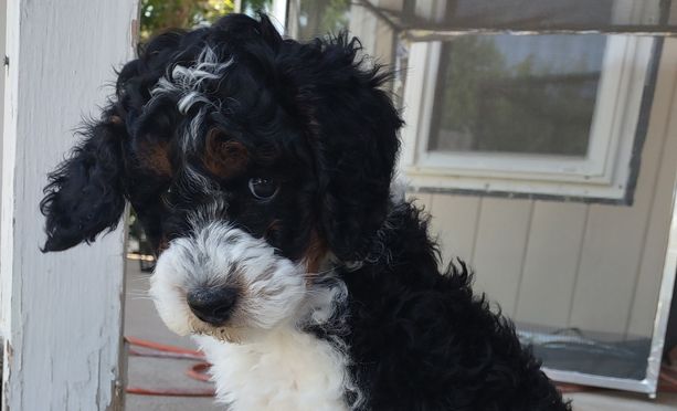 Our Poodle puppies include black, cream, parti, phantom, and brindle. Aussiedoodle puppies include black phantom and black and white. Colors will vary depending on the parent dogs.
