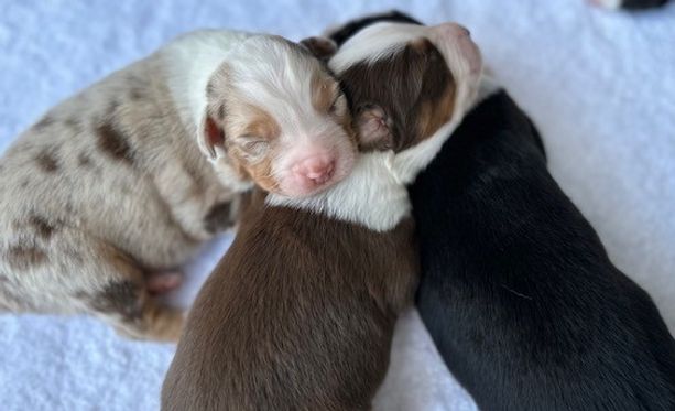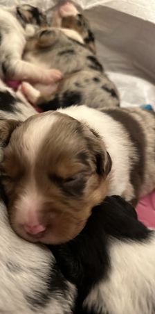 Our puppies include red merle, blue merle, black tri-color, and red tri-color. Colors will vary depending on the parent dogs.