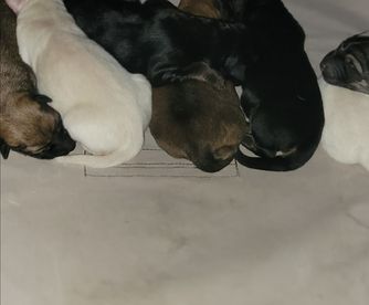 Our puppies include sable, black and tan, and white. Colors will vary depending on the parent dogs.
