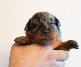 Our puppies include harlequin and black and rust. Colors will vary depending on the parent dogs.