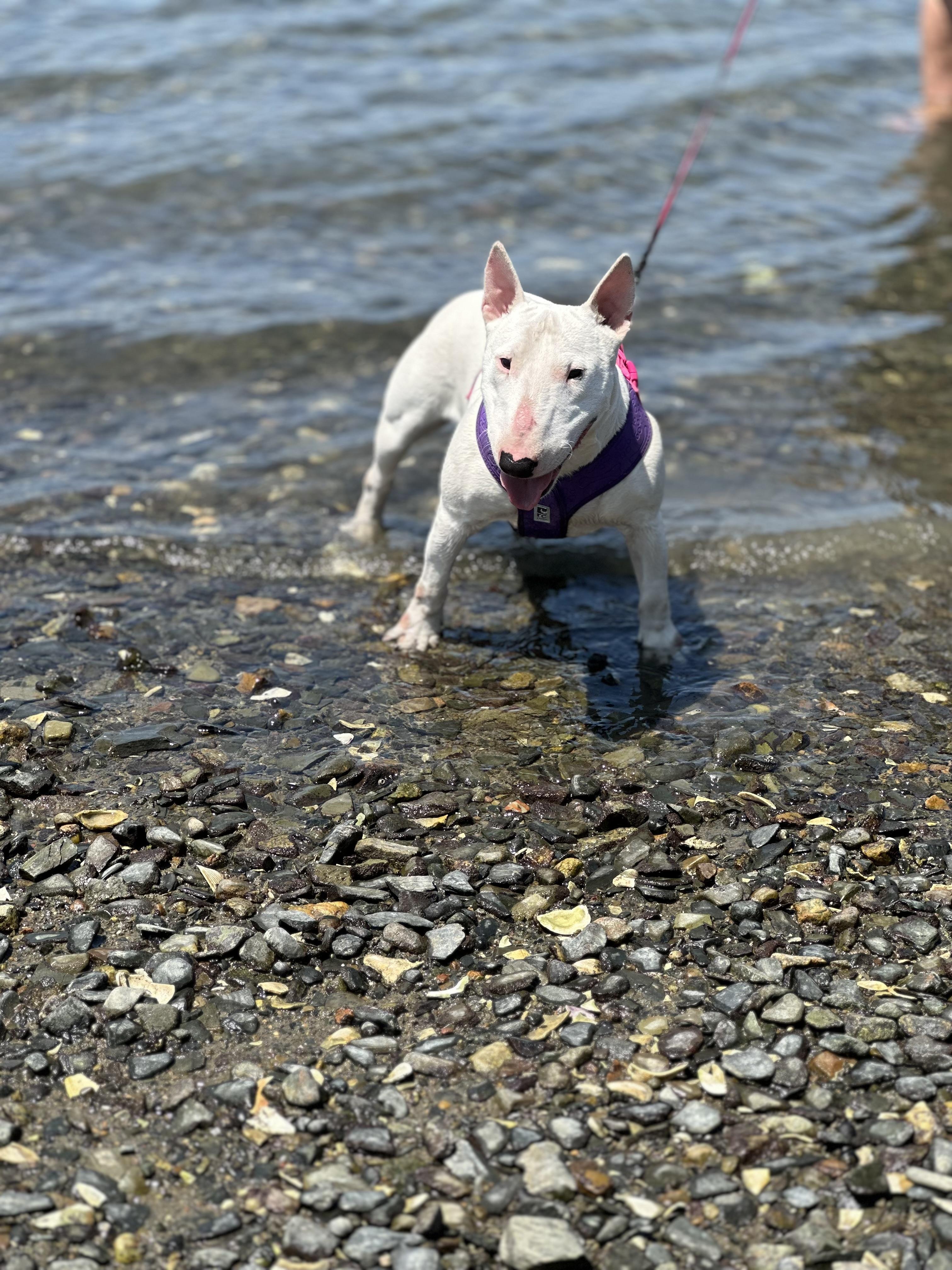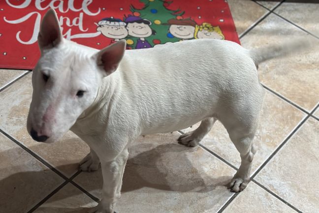 Blanca is a female Miniature Bull Terrier. Carefully selected as a great representative of her breed, Raymon decided to make her part of their program. Raymon has passed Good Dog’s screening process, which involved a review of their breeding practices, environment, and the mental and physical health of their dogs.