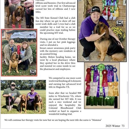 Brenda & Chris is a member of Mississippi State Kennel Club and American Bloodhound Club.