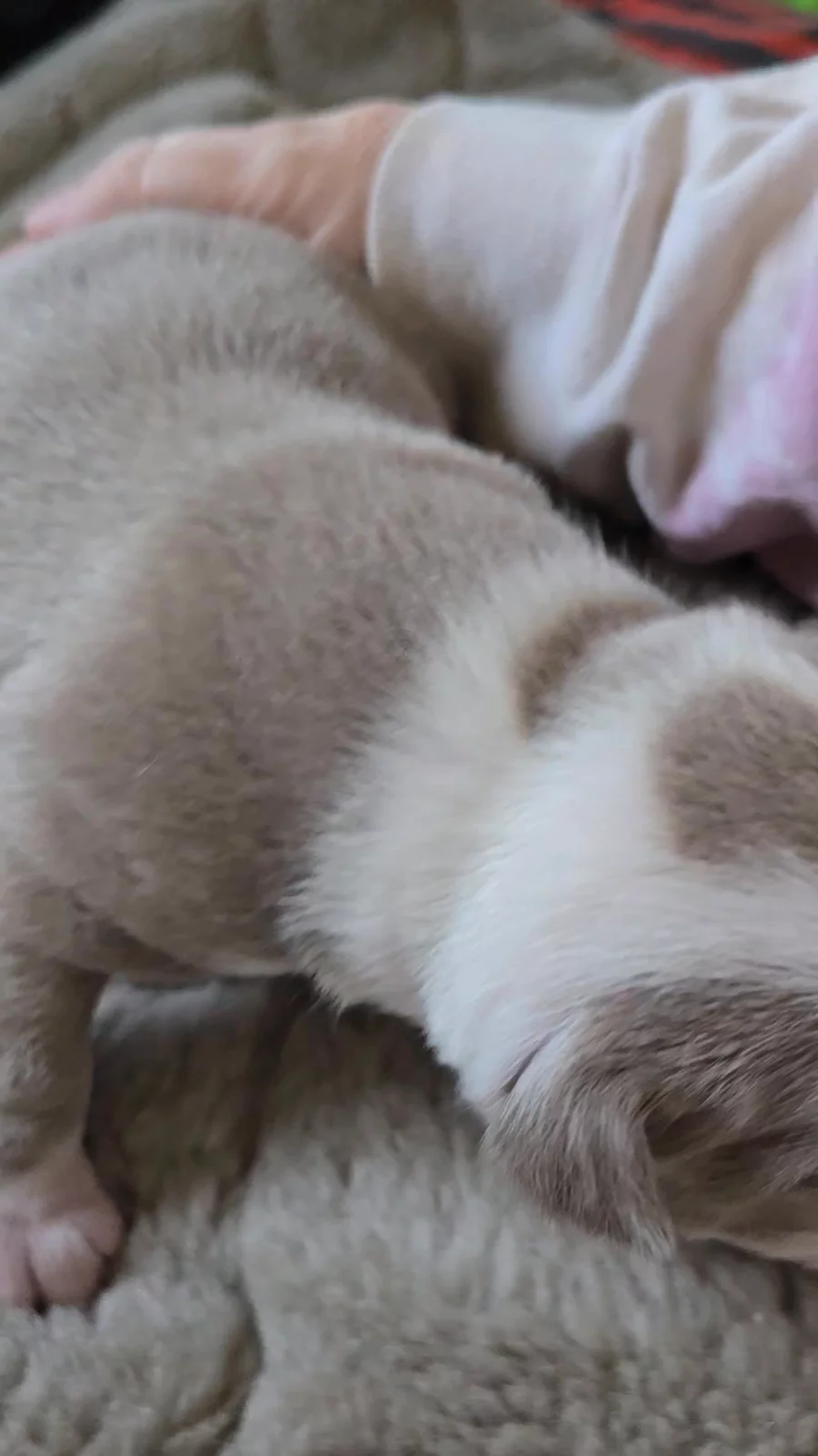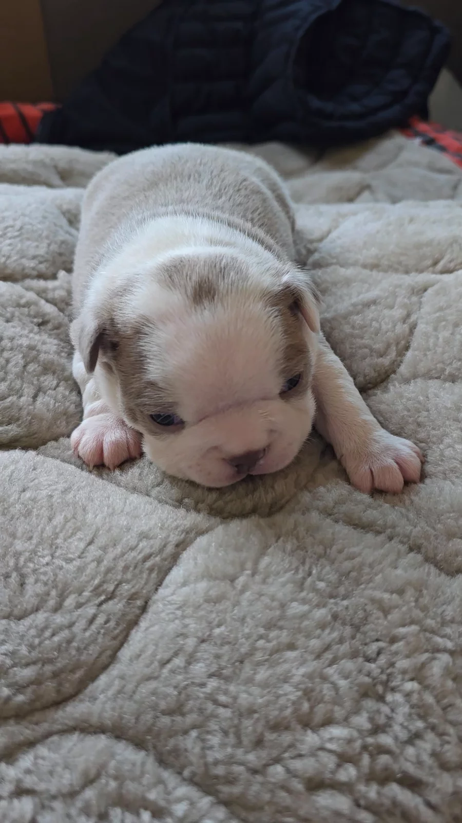 These pups are the sweetest, all but 1 beautiful Lilac Brindle/White female has a home. 3 of them will be going too their furever homes soo!