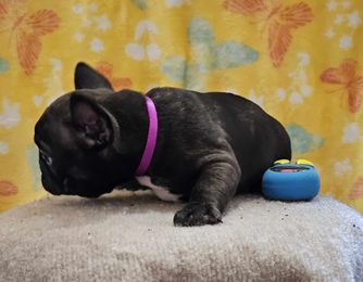 Minnie is a female French Bulldog. Carefully selected as a great representative of her breed, Patty decided to make her part of their program. Patty has passed Good Dog’s screening process, which involved a review of their breeding practices, environment, and the mental and physical health of their dogs.