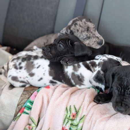 Years ago I purchased my first dane and 2 years later a friend needed to find theirs a home and as much as I loved both of them I decided to let them breed so I could keep one along with a few close friends wanting one. It allowed me to save and get get a couple more and here I am 6 years later with a vision I strive for everyday.