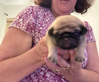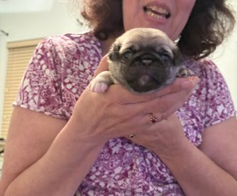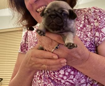 We loved working with RD Pugs. Very kind and loving couple to their pugs. They are part of the family! Our Princess Piper is healthy and playful. Does amazing with our dogs big and small. It was easy to contact them to set up time and dates to pick up our sweet little girl.