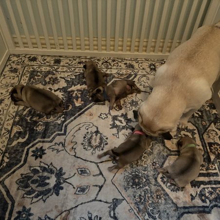 We believe that raising pugs is about family. With 2 AKC Dames & 1 active Sire, our program is small by design, allowing us to give each dog & every puppy the attention, care, & love they deserve. This is our 4th litter, a joyful journey rooted in passion. Our pugs live as cherished members of our family, not in kennels, & we are committed to finding homes that will love them just as deeply