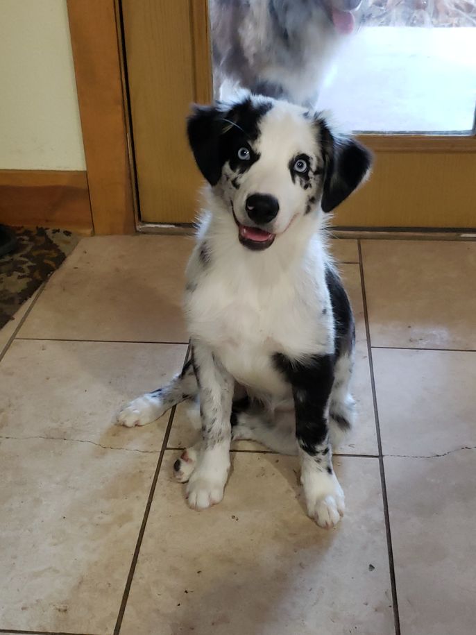 Lou is a real people pleaser- she is easy to train, she loves to work for toys or food. She is very attached to her person and is happy to be your shadow. Her favorite sports are dock diving and herding.