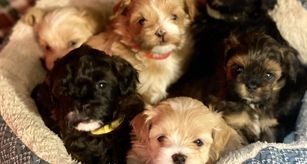 Our Maltipoo puppies include apricot, black, red, and phantom. Morkie puppies are black & tan tri-color. Mal-Shi puppies include white and tan and black and white. Colors will vary depending on the parent dogs.