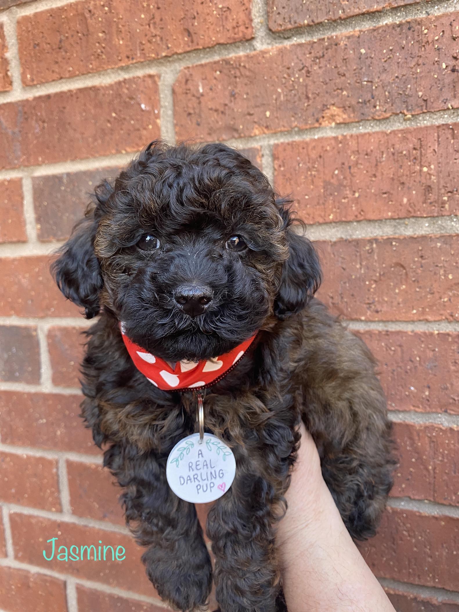 “Our pups are current on vaccinations from our vet and come with a health guarantee, food, toys, a blanket that mom slept on, potty pad trained and crate trained, well socialized and full of soft snuggles. The non refundable deposit will hold your pup until time of pick up.”