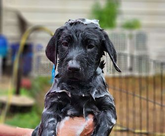Sweet, calm, very good listener, soft, has a goofy side, intelligent. Bella is from hunting lines in Europe. She was brought over tothe US to be trained to hunt. she had no desire to hunt, so she was introduced to Nosework. She loves it. She has been in classes for 1 1/2 years and is ready for trials. She has taken a break to have her last litter. She is off leash trained.