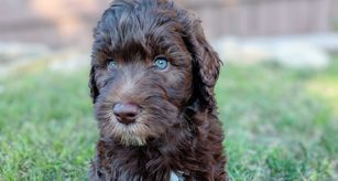 Duke stands at 22 inches tall at the withers (the top of the shoulder) and weighs 55 pounds. He has a shorter, stockier build and often passes his wonderful dense bone structure on to his pups. His coat is wavy and low shedding.