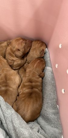 Our puppies include red golden, red, and golden rust. Colors will vary depending on the parent dogs.