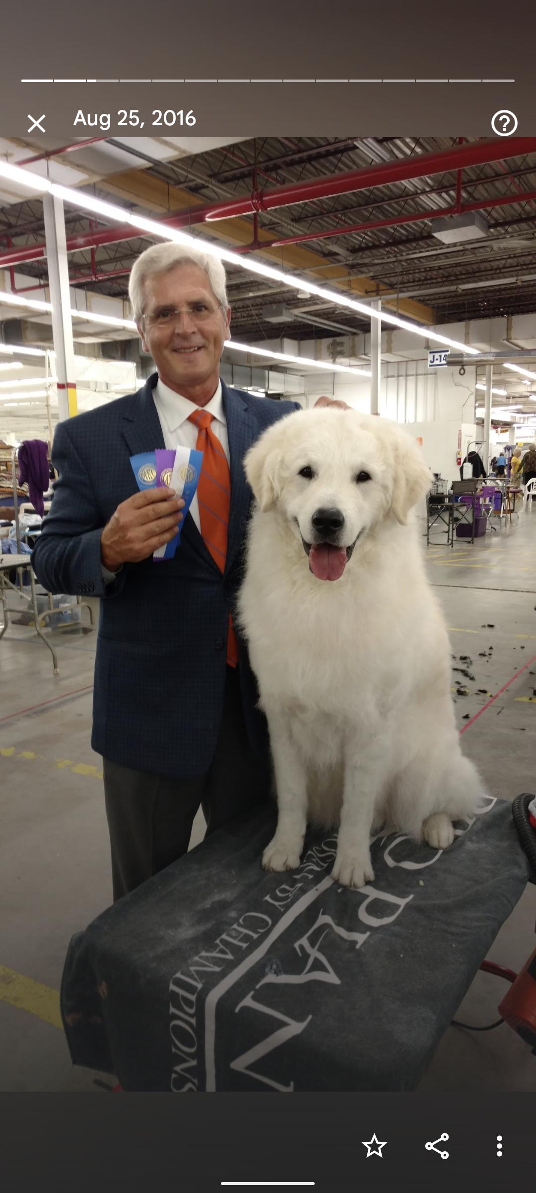 Rider is a male Kuvasz. Carefully selected as a great representative of his breed, Robin decided to make him part of their program. Robin has passed Good Dog’s screening process, which involved a review of their breeding practices, environment, and the mental and physical health of their dogs.