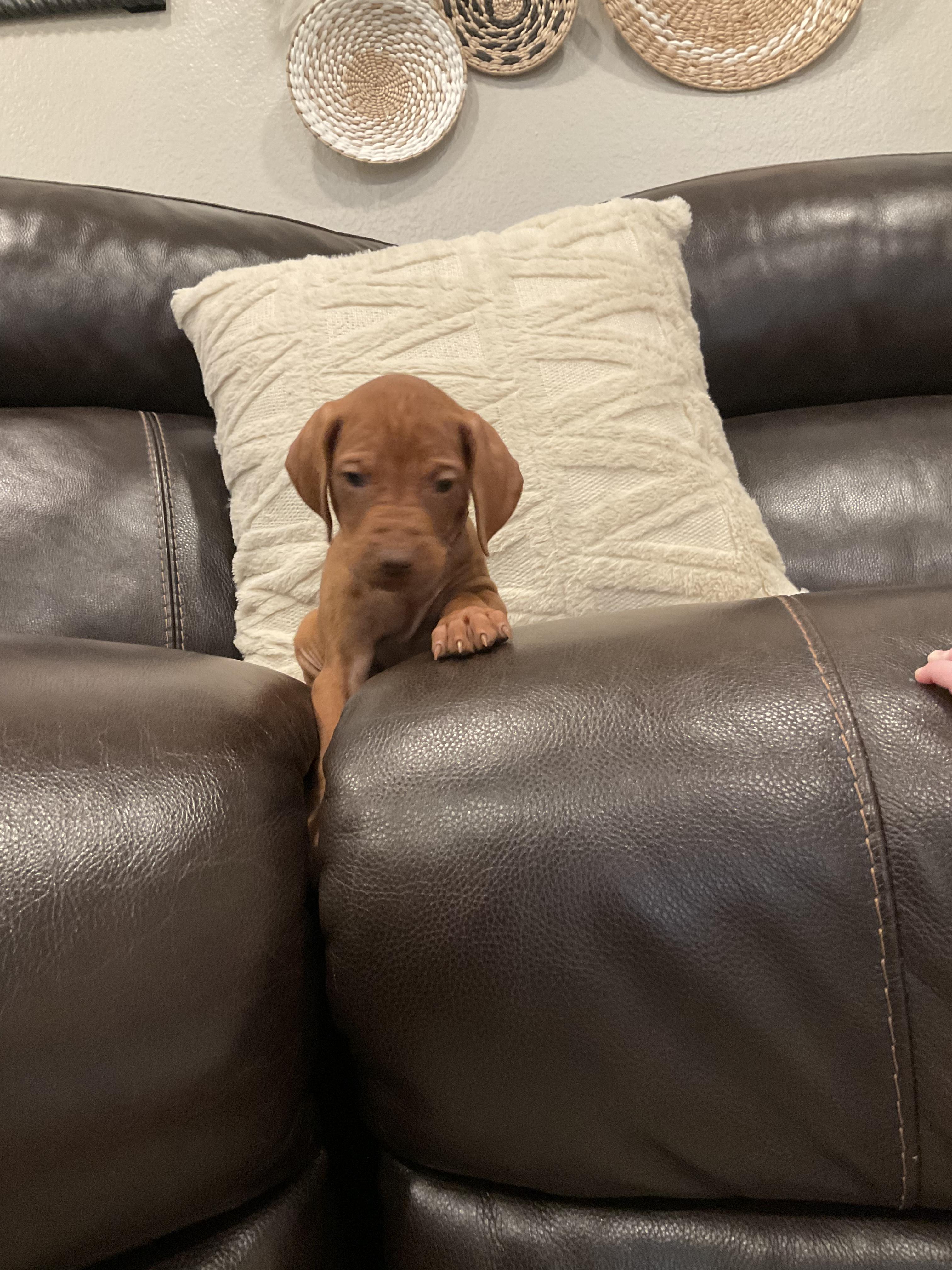 Beretta is a one of a kind Vizsla. She is the main reason why I got into the breed. Beretta is very clingy and “Velcro Vizsla” Beretta was my initial hunting / companion Vizsla before I got into the breed big time. She’s very loyal and eager to please at all times. She can be right by my side in a 5 mile hike or on the patio cuddled up at night time sipping tea. She’s in love with our 9 month old son which makes her the perfect Vizsla for our family. She is very adaptable to whatever we have going on for the day, whether it be work or play!