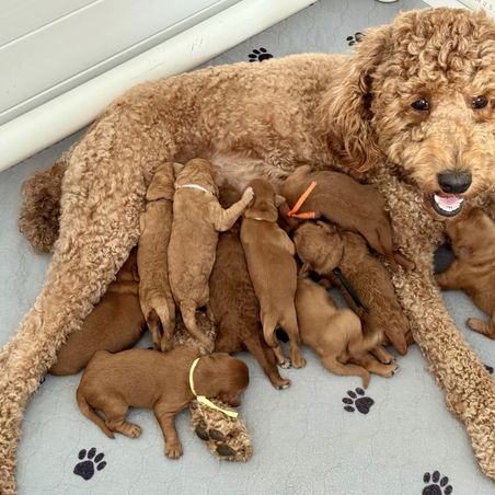 I'm Season V., the breeder behind Red Acres Poodles & Doodles located in Hesperia, MI. We raise our litters in our home to help set the foundation for happy and confident puppies to transition well into their forever homes. It’s a privilege to have the opportunity to make an impact on each individual puppy!