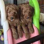 Cockapoo puppies are standard size. Goldendoodle puppies include miniature, medium, and standard sizes. Sizes will vary depending on the parent dogs.