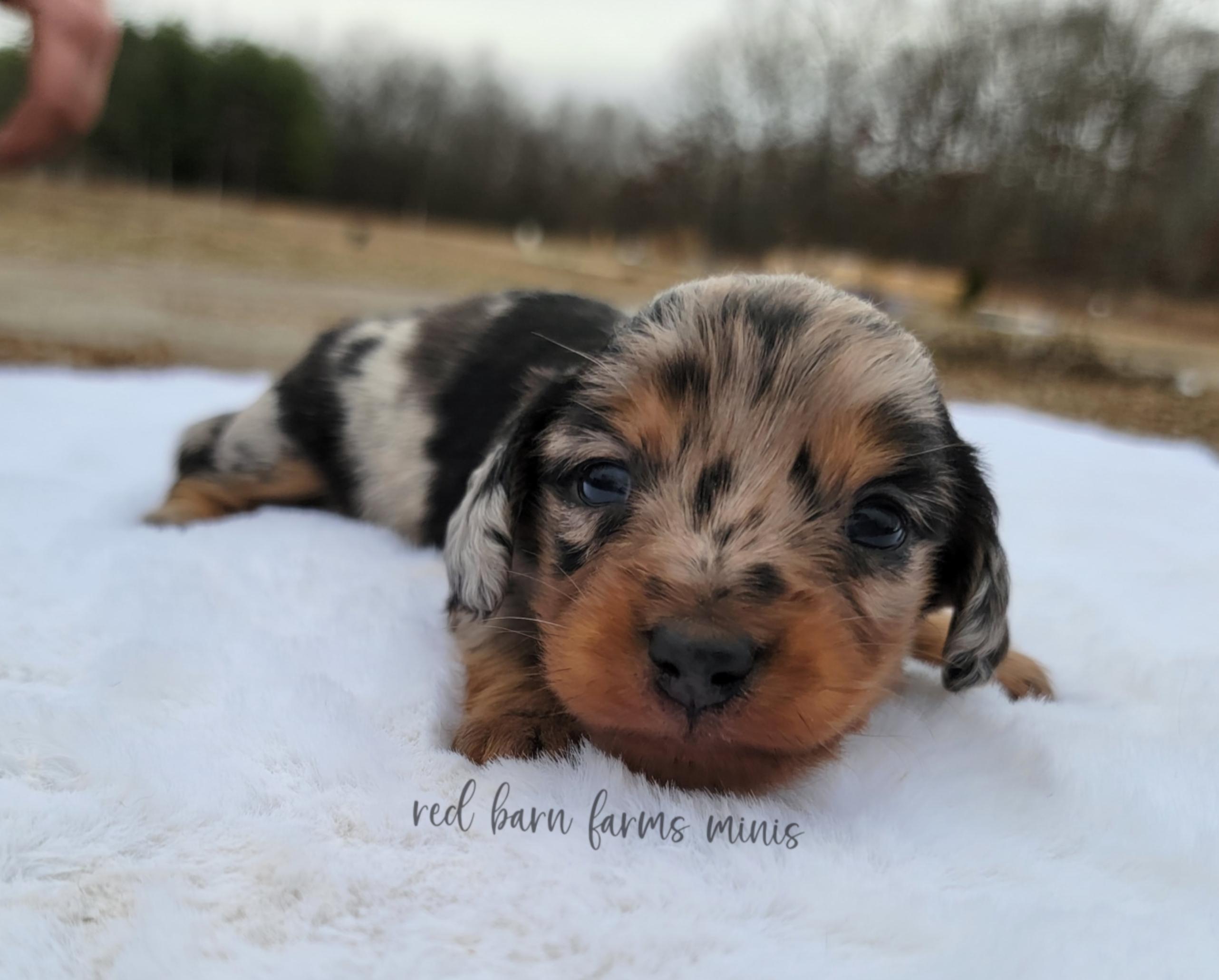 I'm Alysia J., the breeder behind Red Barn Farms Minis located in Mcminnville, TN. We are a reputable breeder of Miniature Dachshunds in McMinnville, TN. We strive for happy, healthy puppies. One of our focuses in our program is breeding for dilutes (blue or isabella color) without CDA which is a common problem in dilute puppies. We have spent years trying to rid lines of CDA.