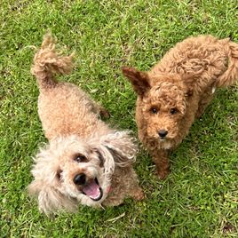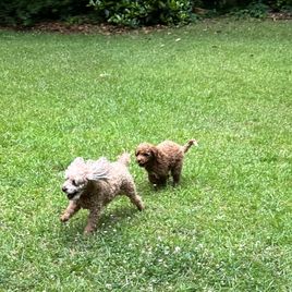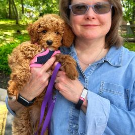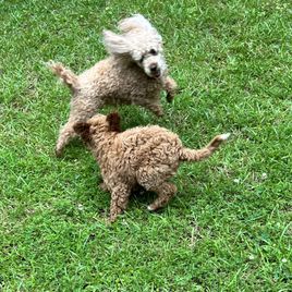Heather at Red Barn Poodles, was a pleasure to deal with. Wonderful person. Great experience. You get the feeling that she’s dedicated and passionate about what she does. We have dealt with several poodle breeders in the past, and she is by far the best. My wife and I drove 400 miles to pick up our new furry family member from Red Barn Poodles, and we are both glad we did. We named her Nutmeg, and are totally in love with her. Beautiful, intelligent, full of life, and just a tad mischievous. You simply couldn’t ask for more. I’m posting a few photos of Nutmeg and her new sister, Ginger.